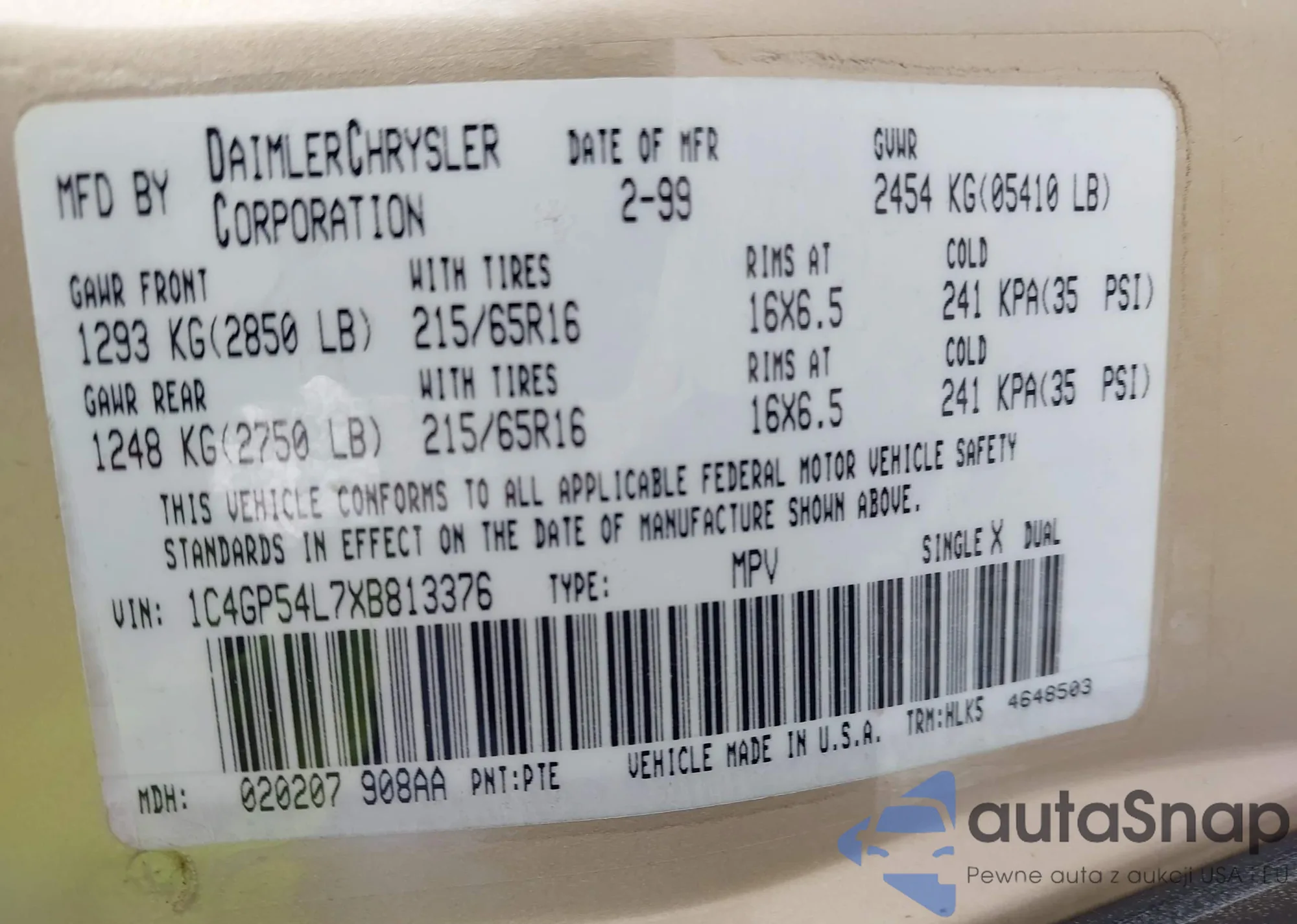 • VIN 1C4GP54L7XB813376