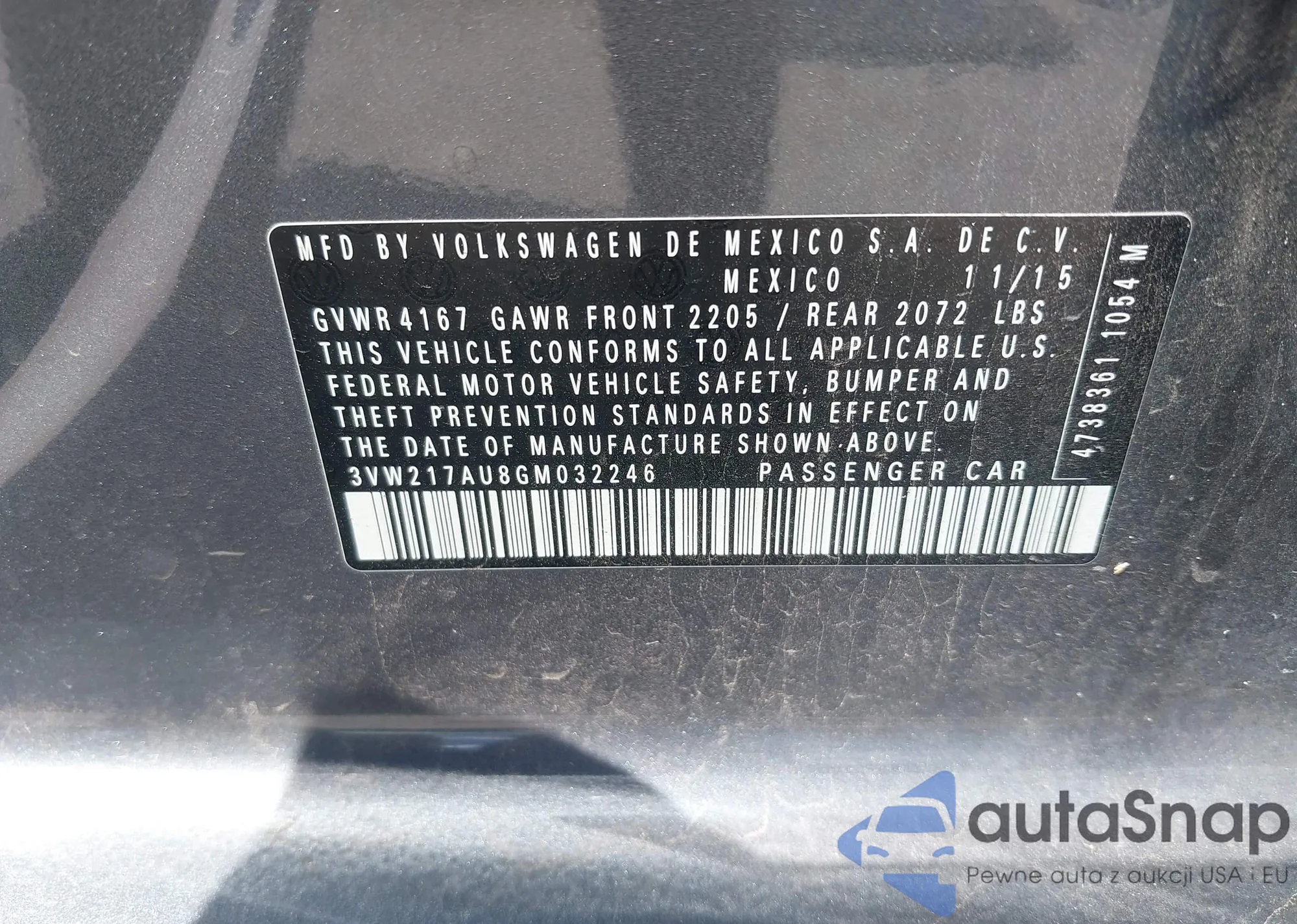 • VIN 3VW217AU8GM032246