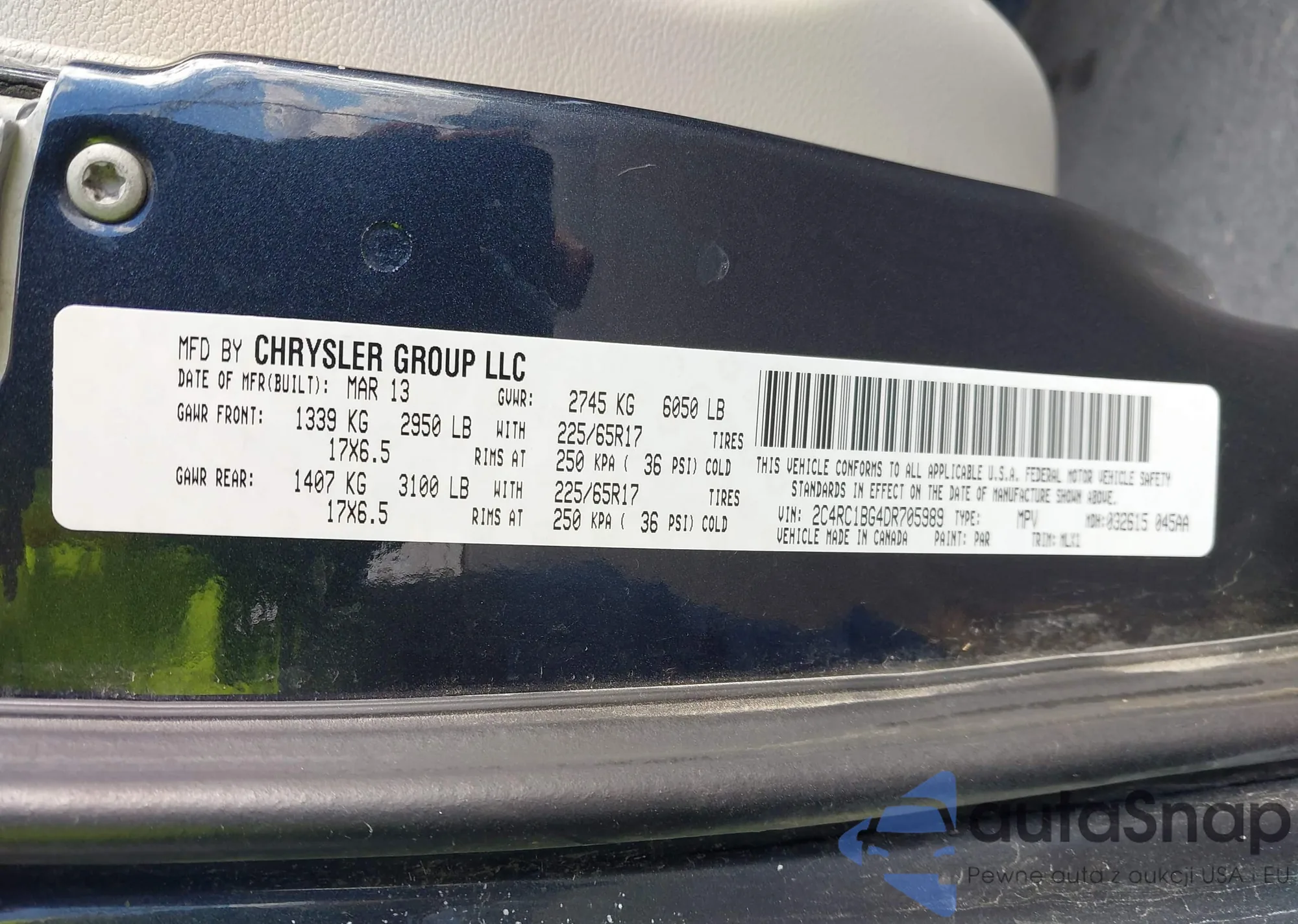 • VIN 1HGCR3F84DA030704