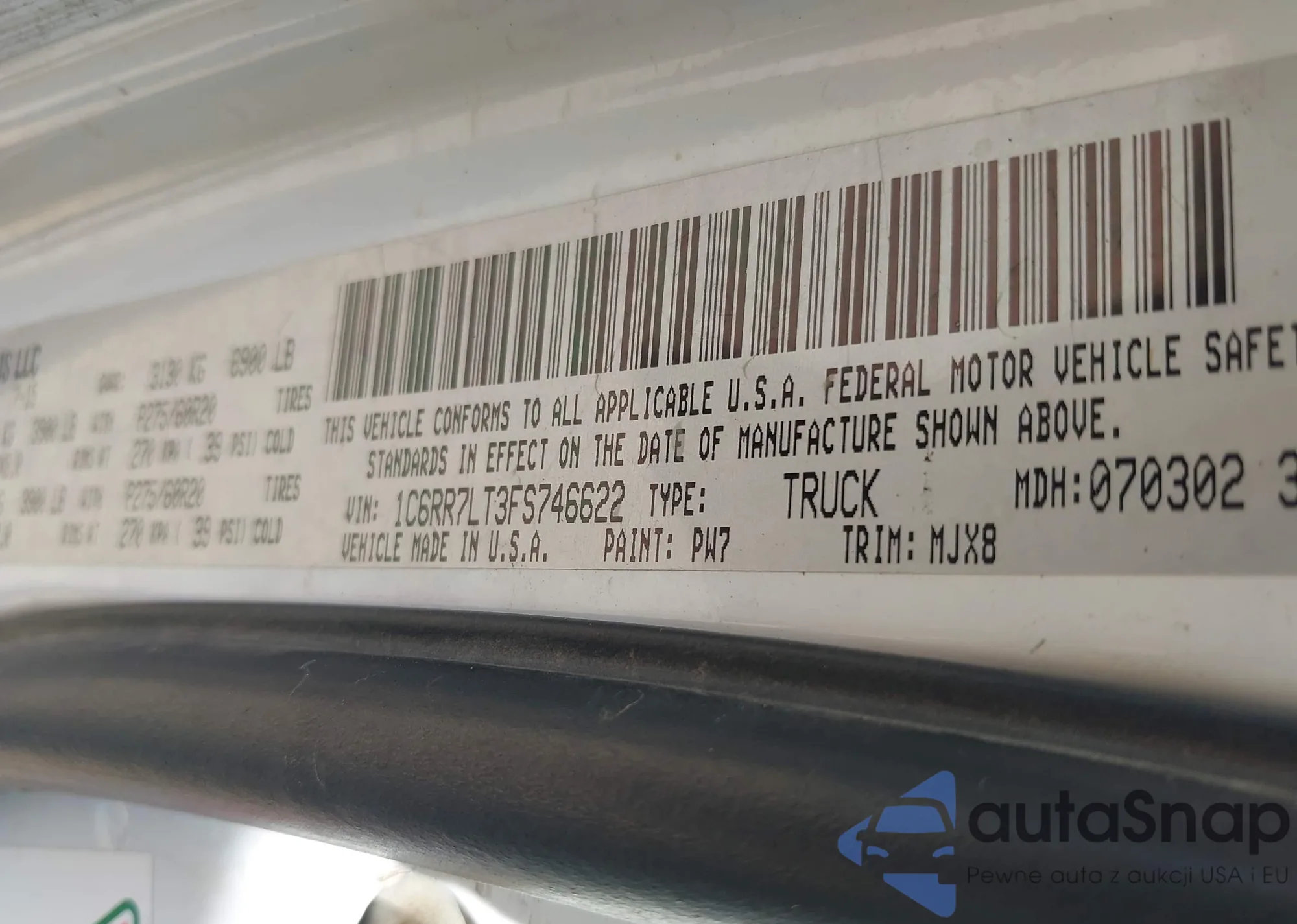 • VIN 3B7HC13Y7VG826767