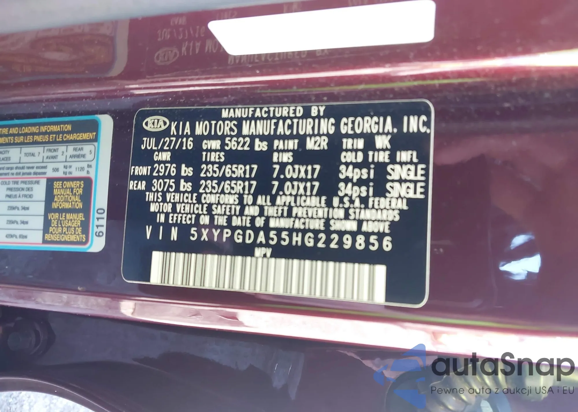 • VIN 5XYPGDA55HG229856