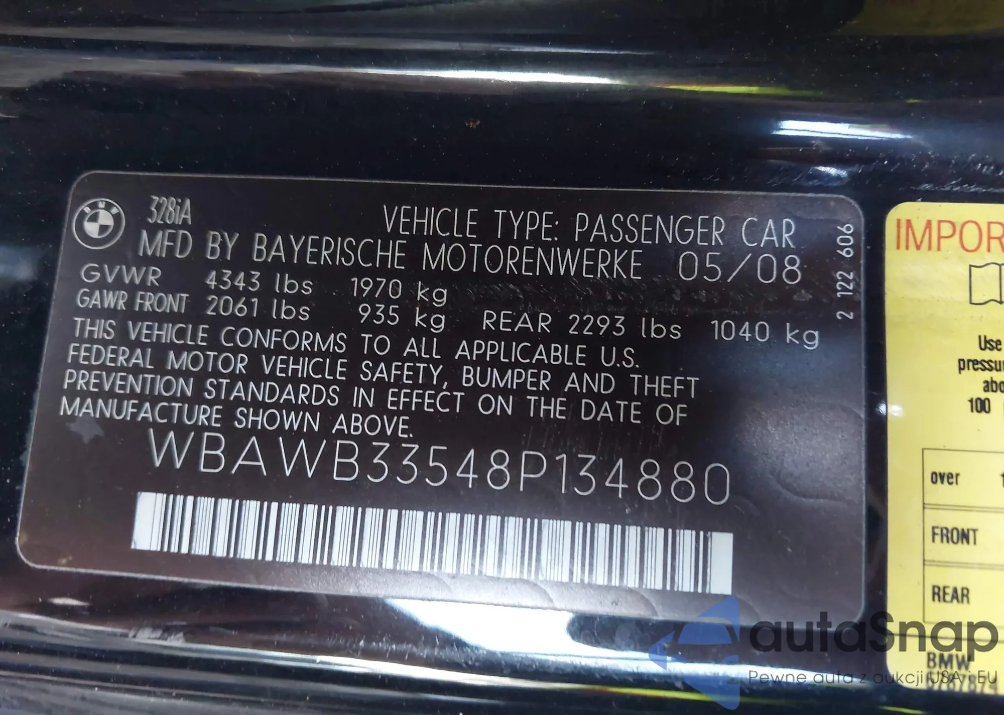 LOT: 43516733 VIN: WBAWB33548P134880