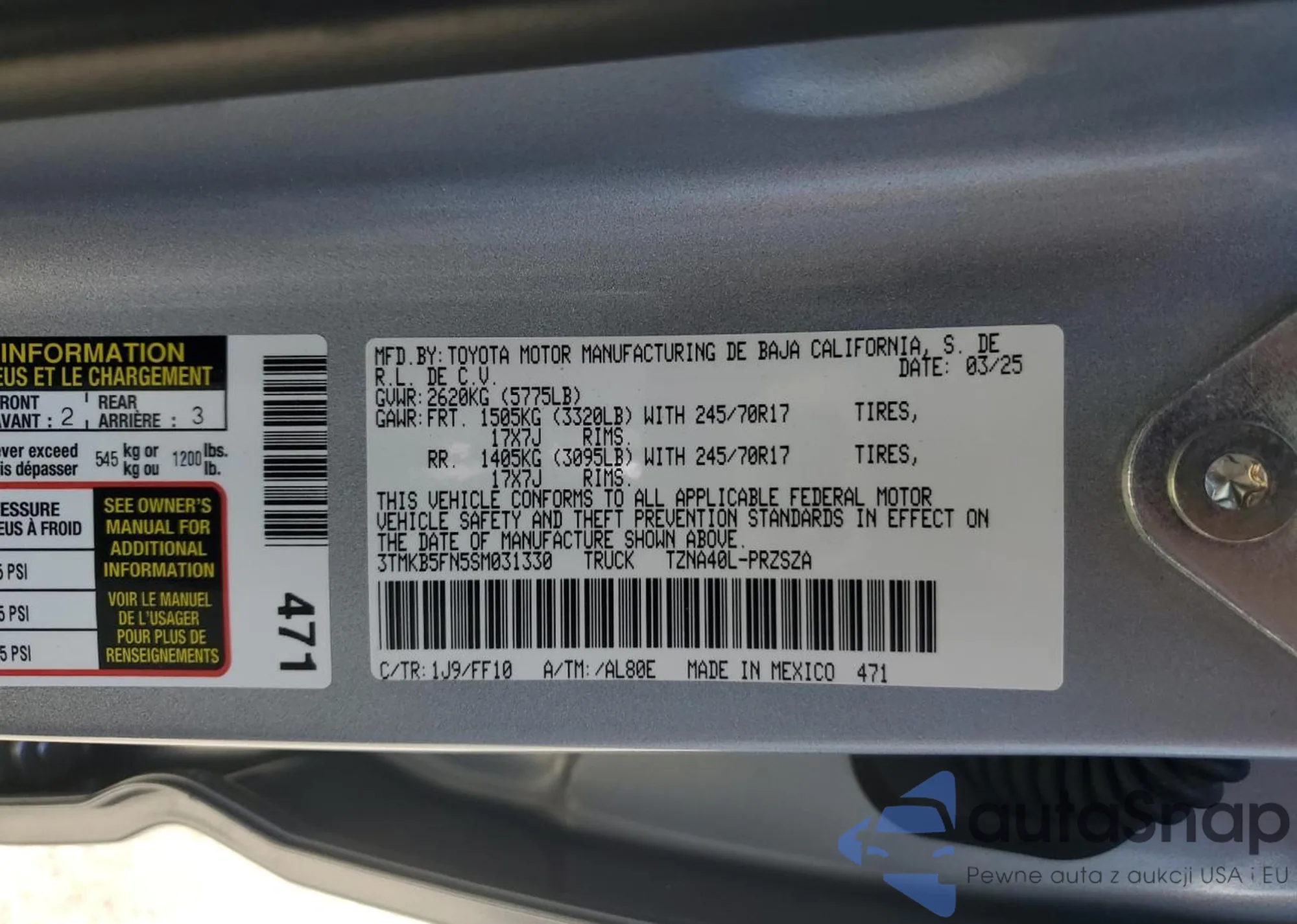 • VIN 3TMKB5FN5SM031330