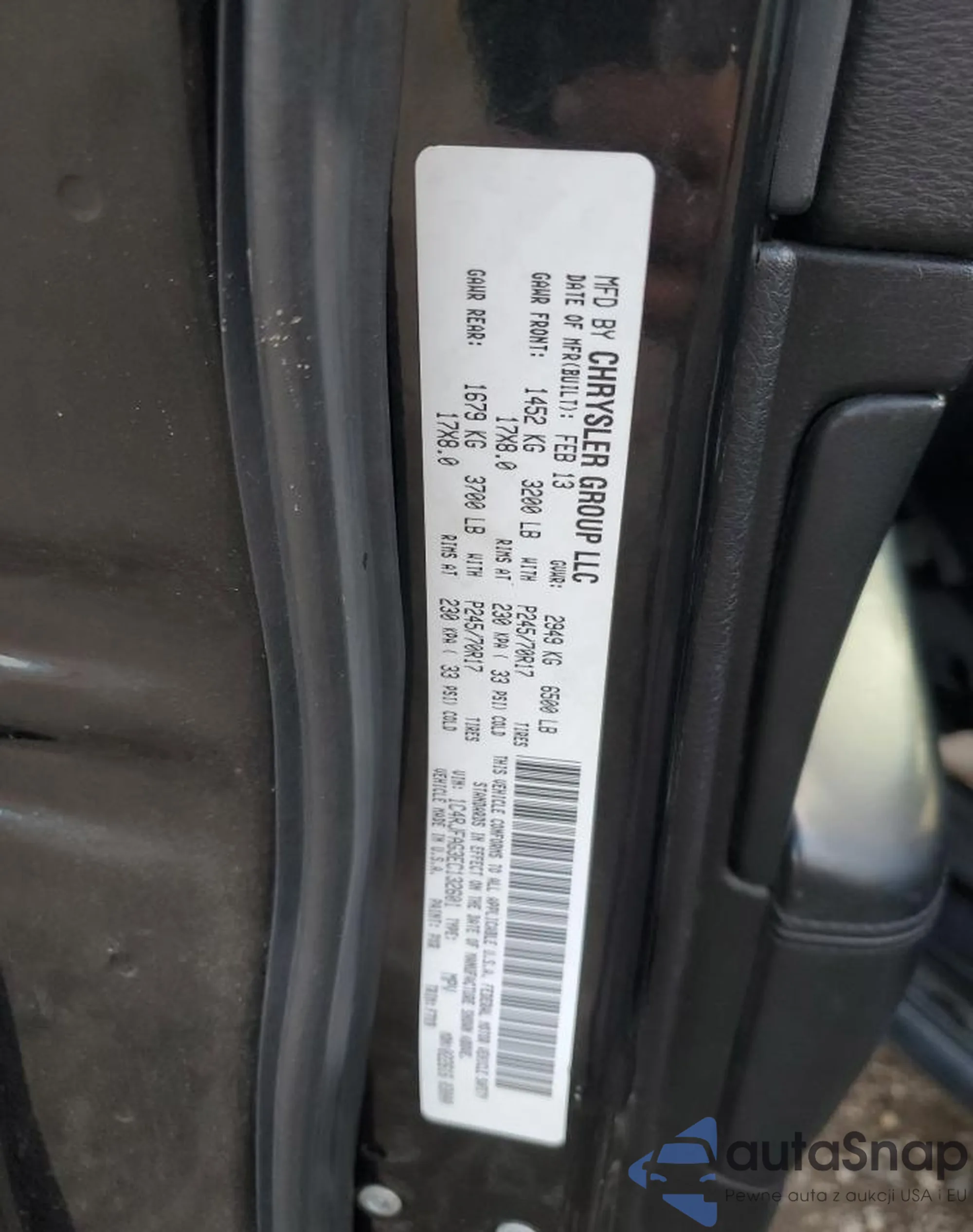 • VIN 1C4RDJDG0LC205099