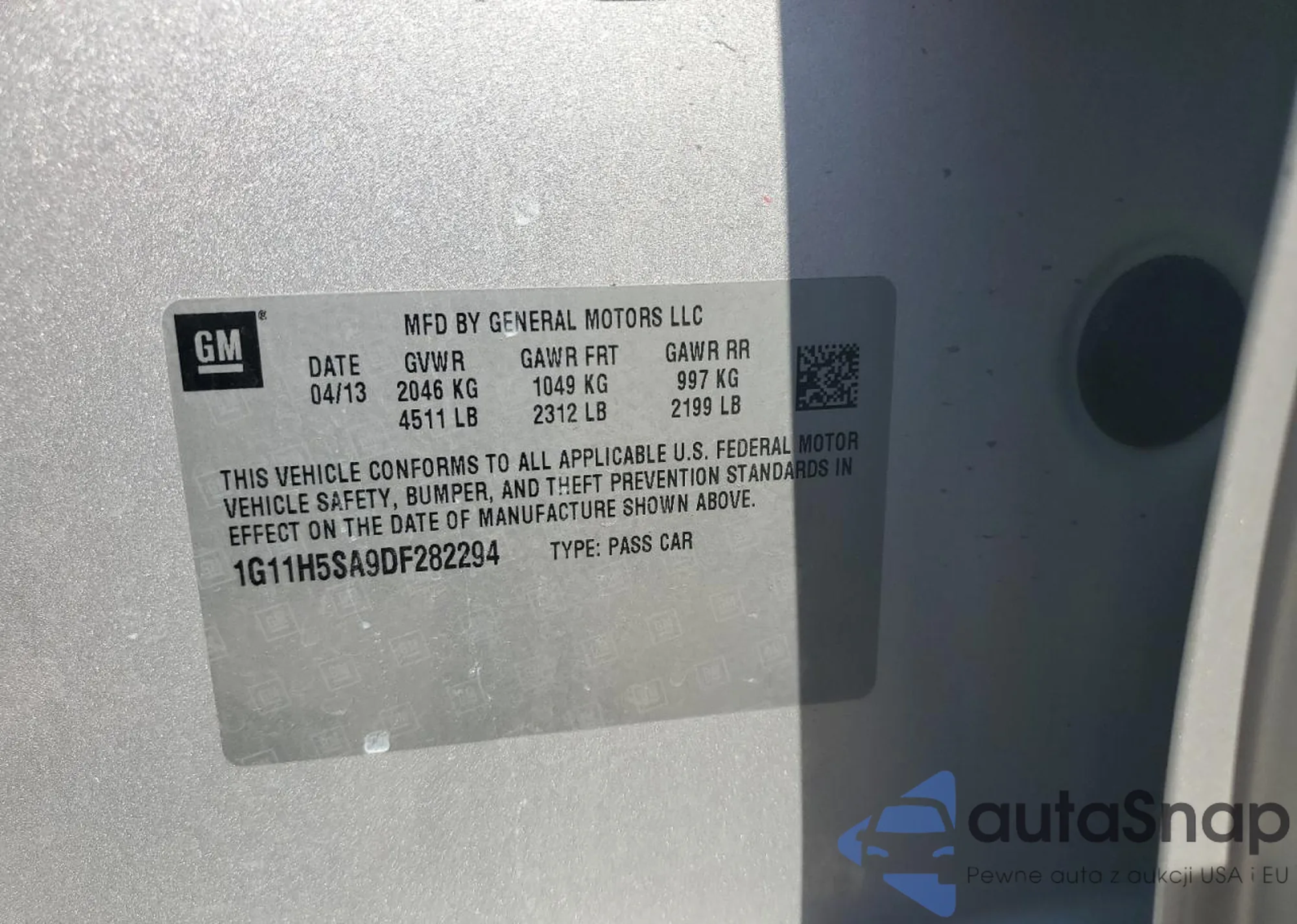 LOT: 80702255 VIN: 1G11H5SA9DF282294