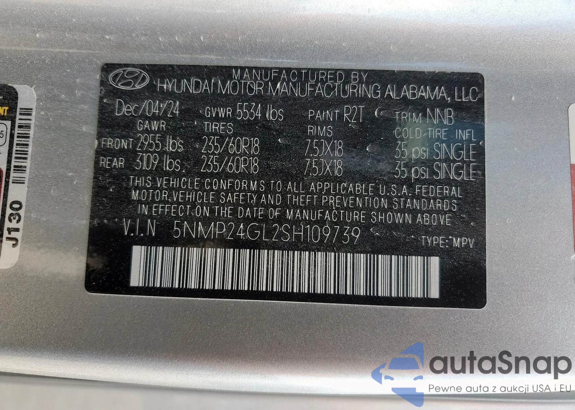 LOT: 84032935 VIN: 5NMP24GL2SH109739
