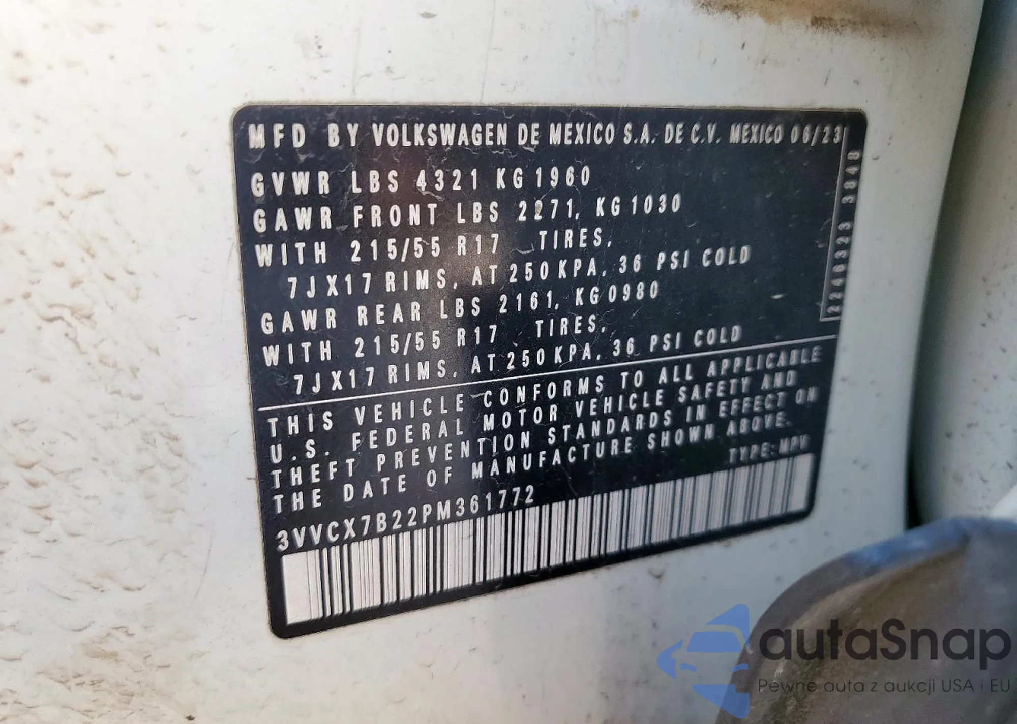 LOT: 85291025 VIN: 3VVCX7B22PM361772