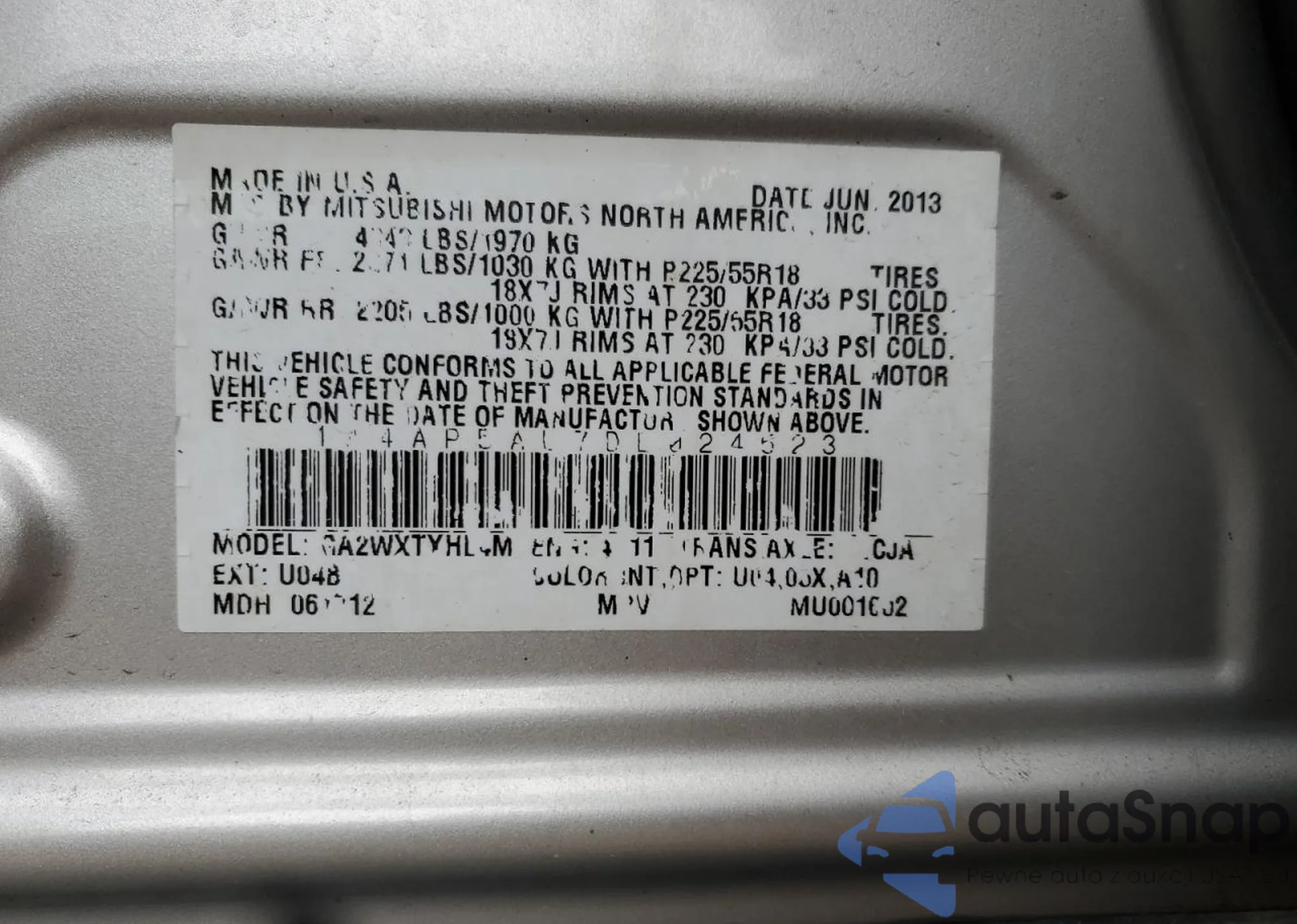 • VIN WP0AA2A79DL018462