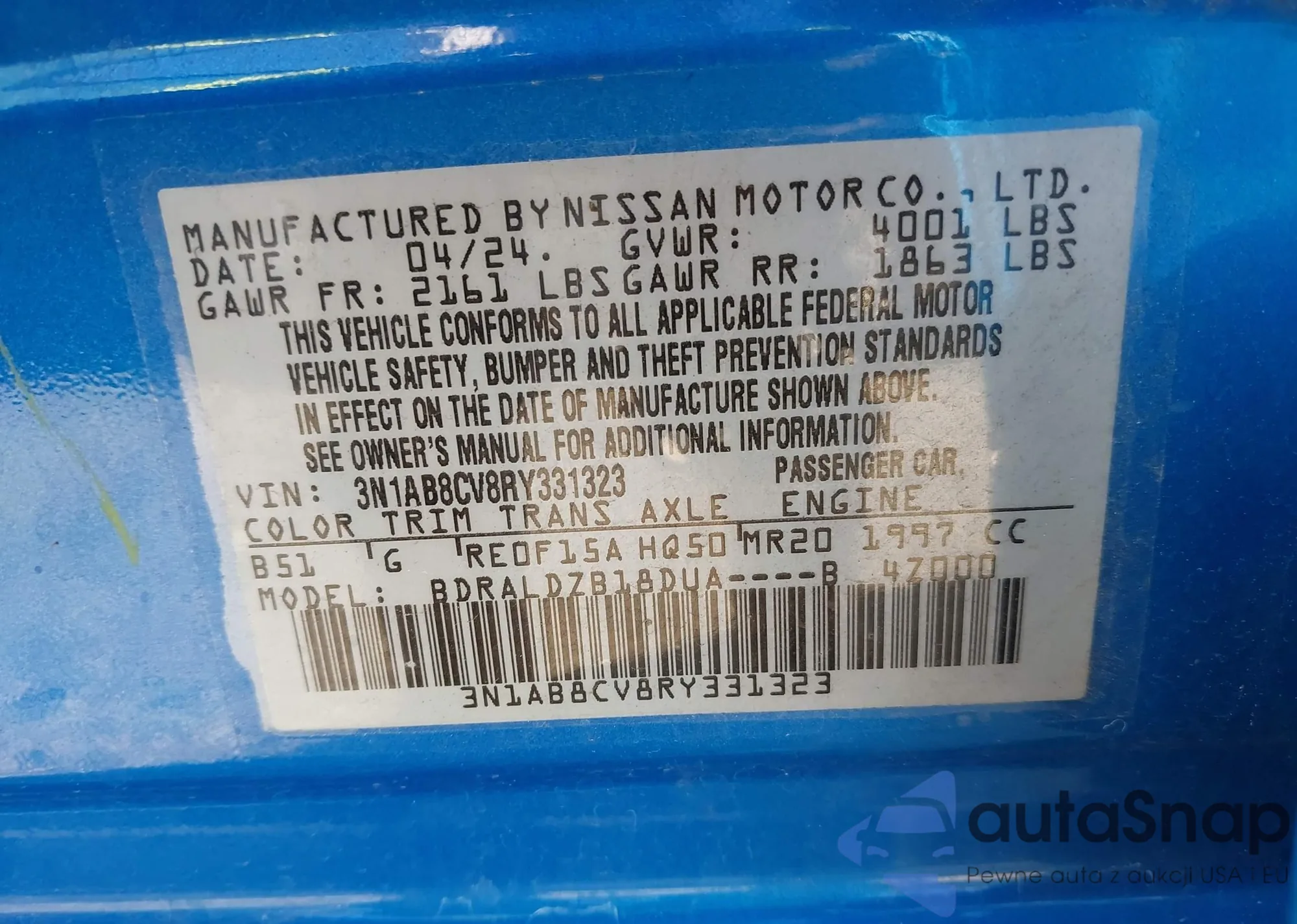 • VIN 3N1AB7AP5KY316931
