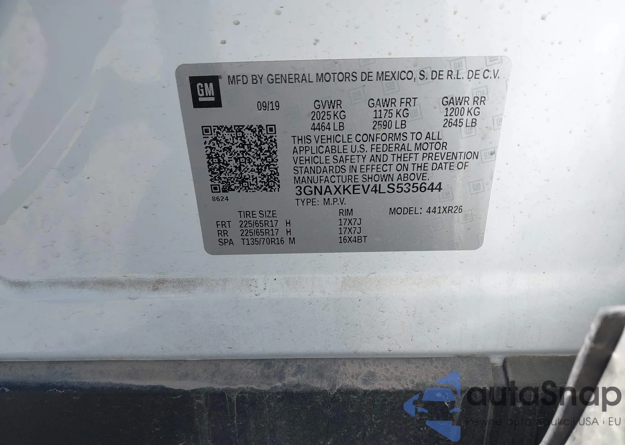 LOT: 43700089 VIN: 3GNAXKEV4LS535644
