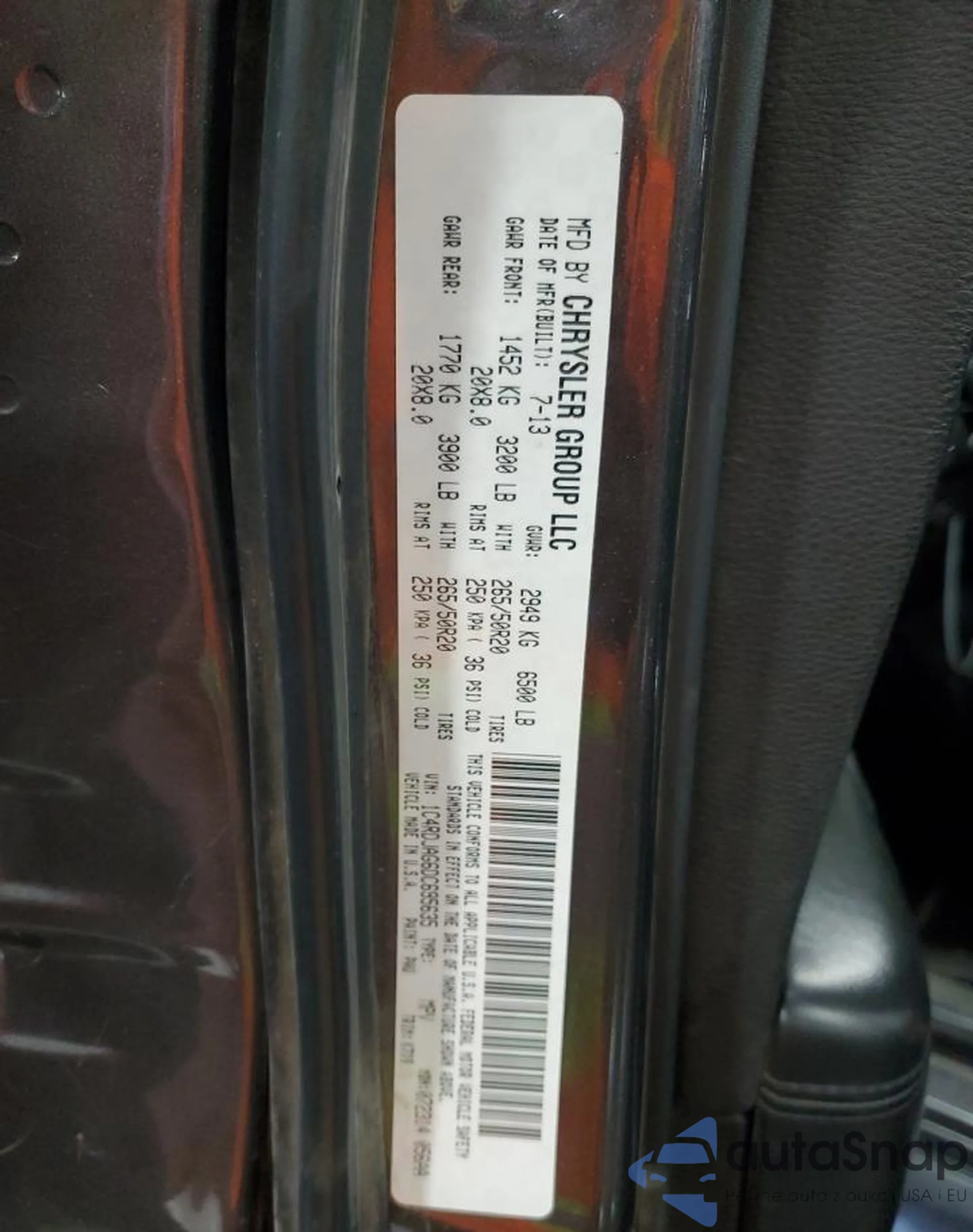 • VIN 1C4RDJAG6DC695635