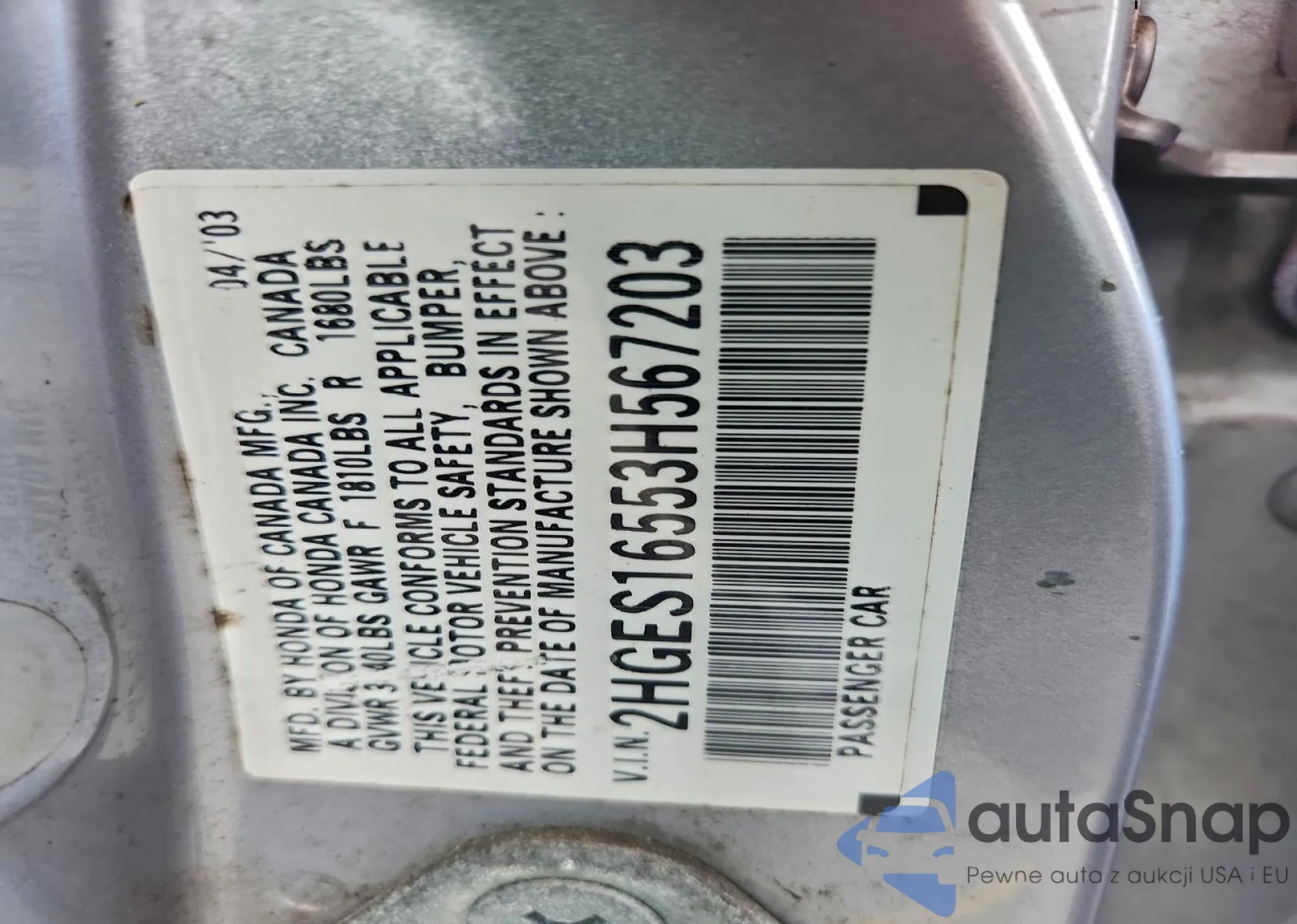 LOT: 93243855 VIN: 19XFB2F81FE011800