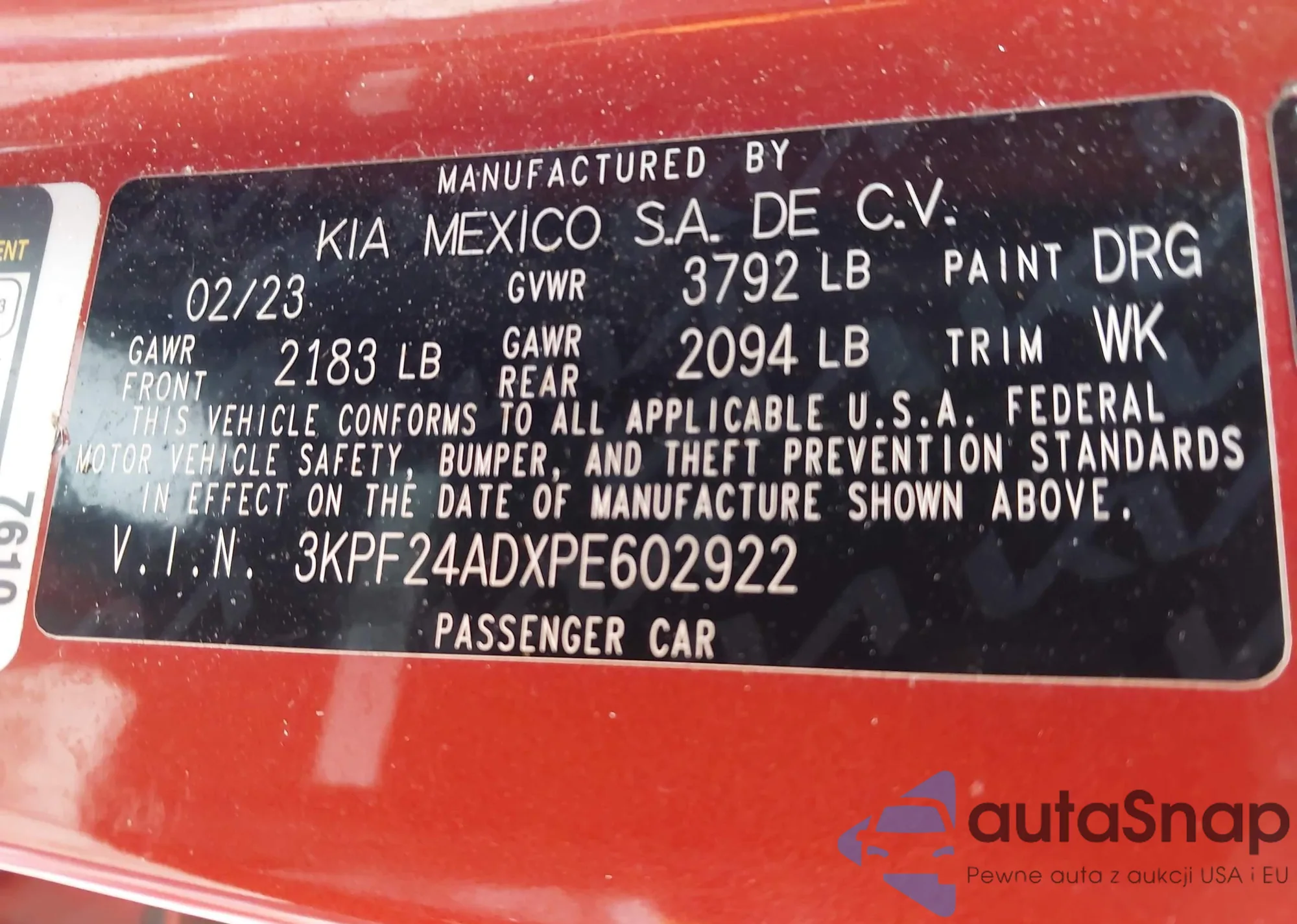 • VIN 1N4BL4DWXKC214281