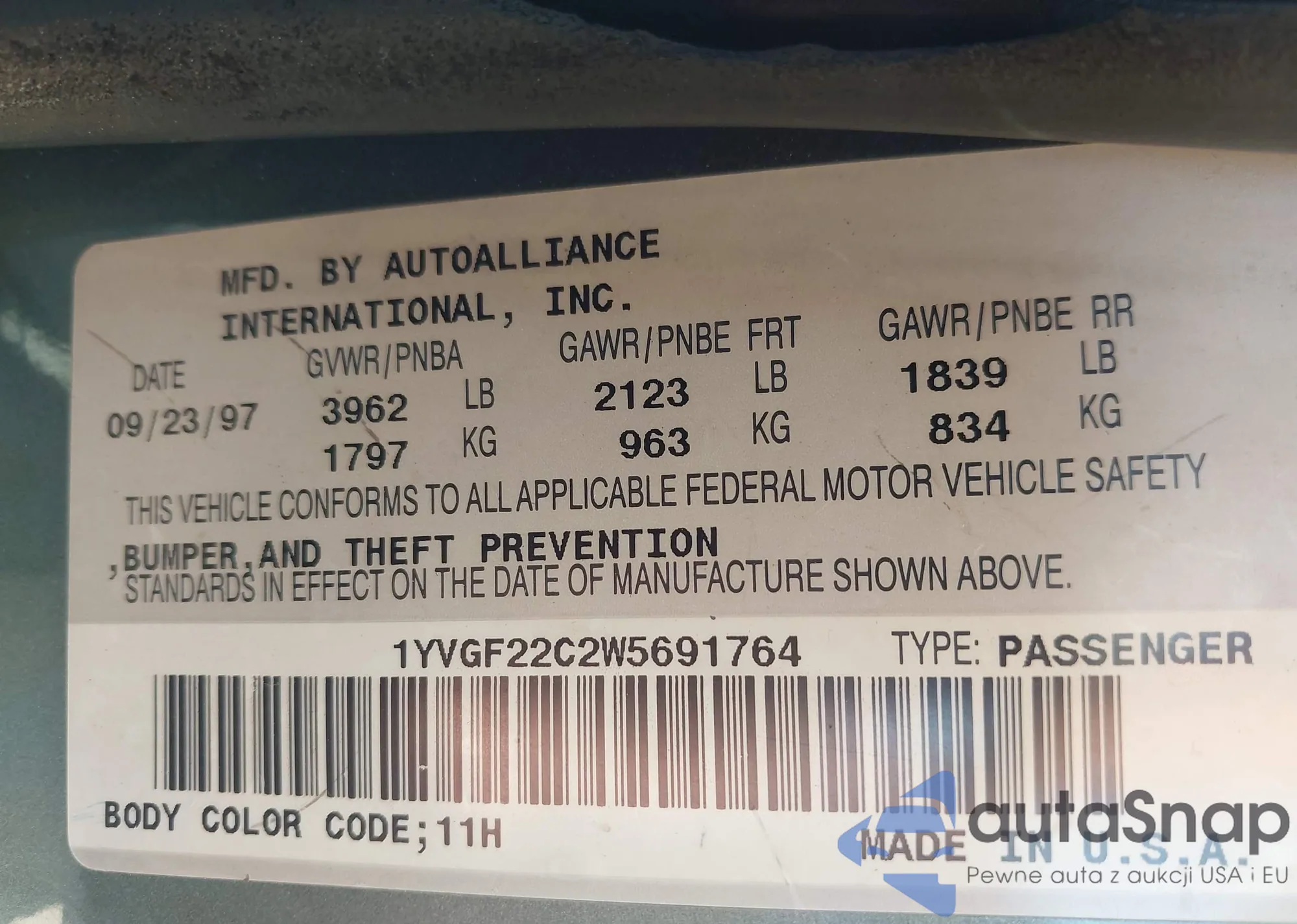 • VIN 1YVGF22C2W5691764