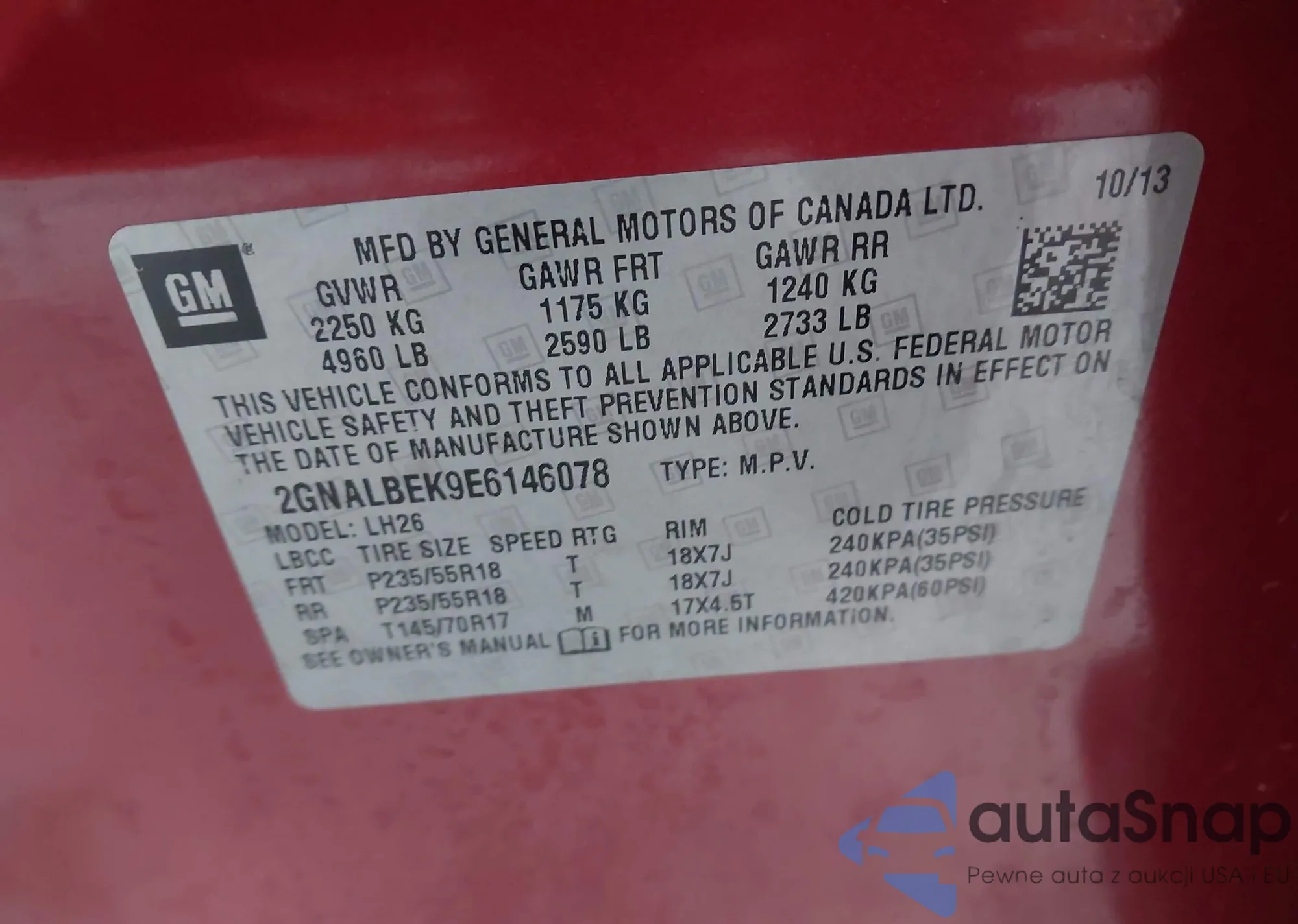 • VIN 2GNALBEK9E6146078