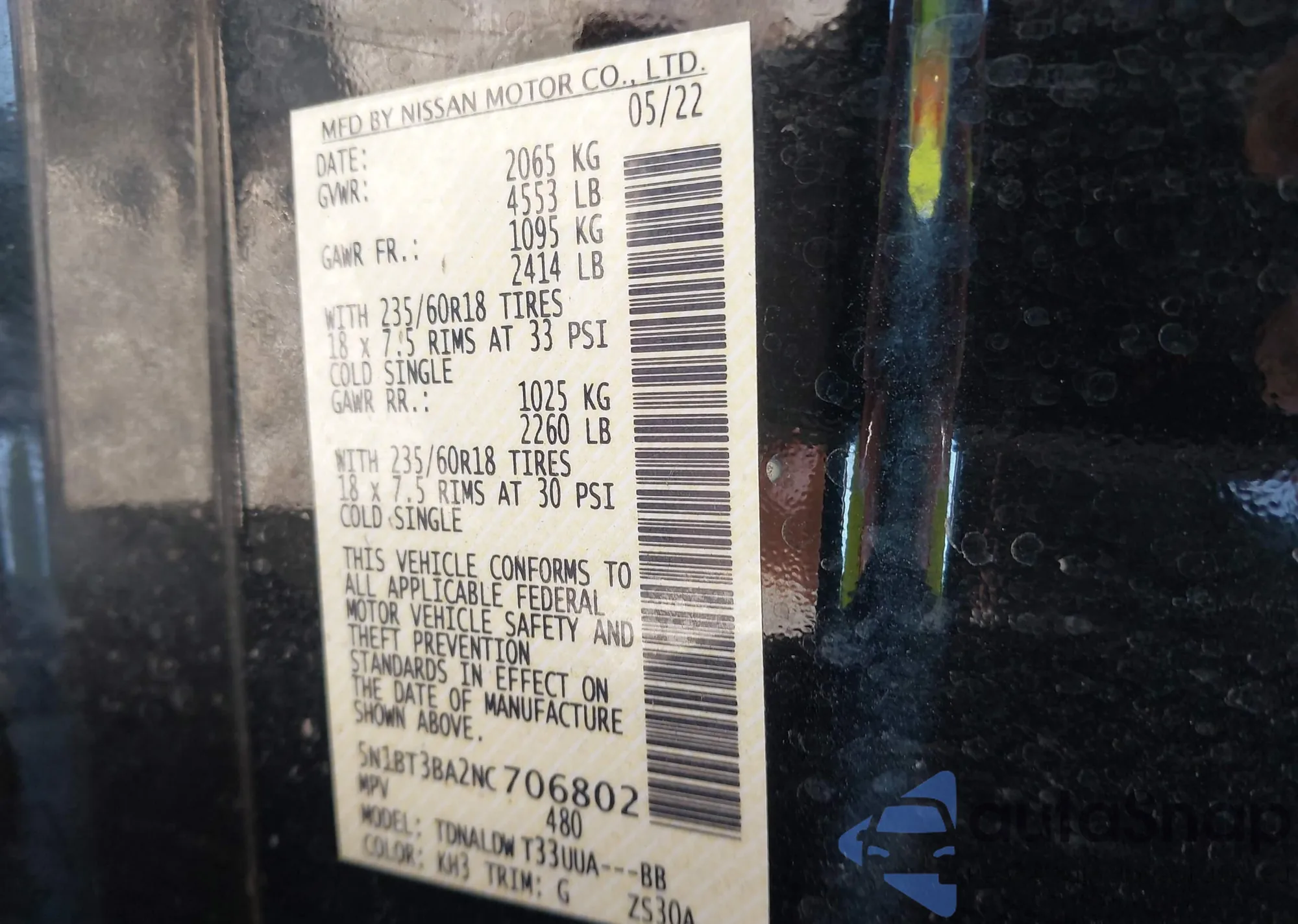 • VIN 5N1BT3BA2NC706802