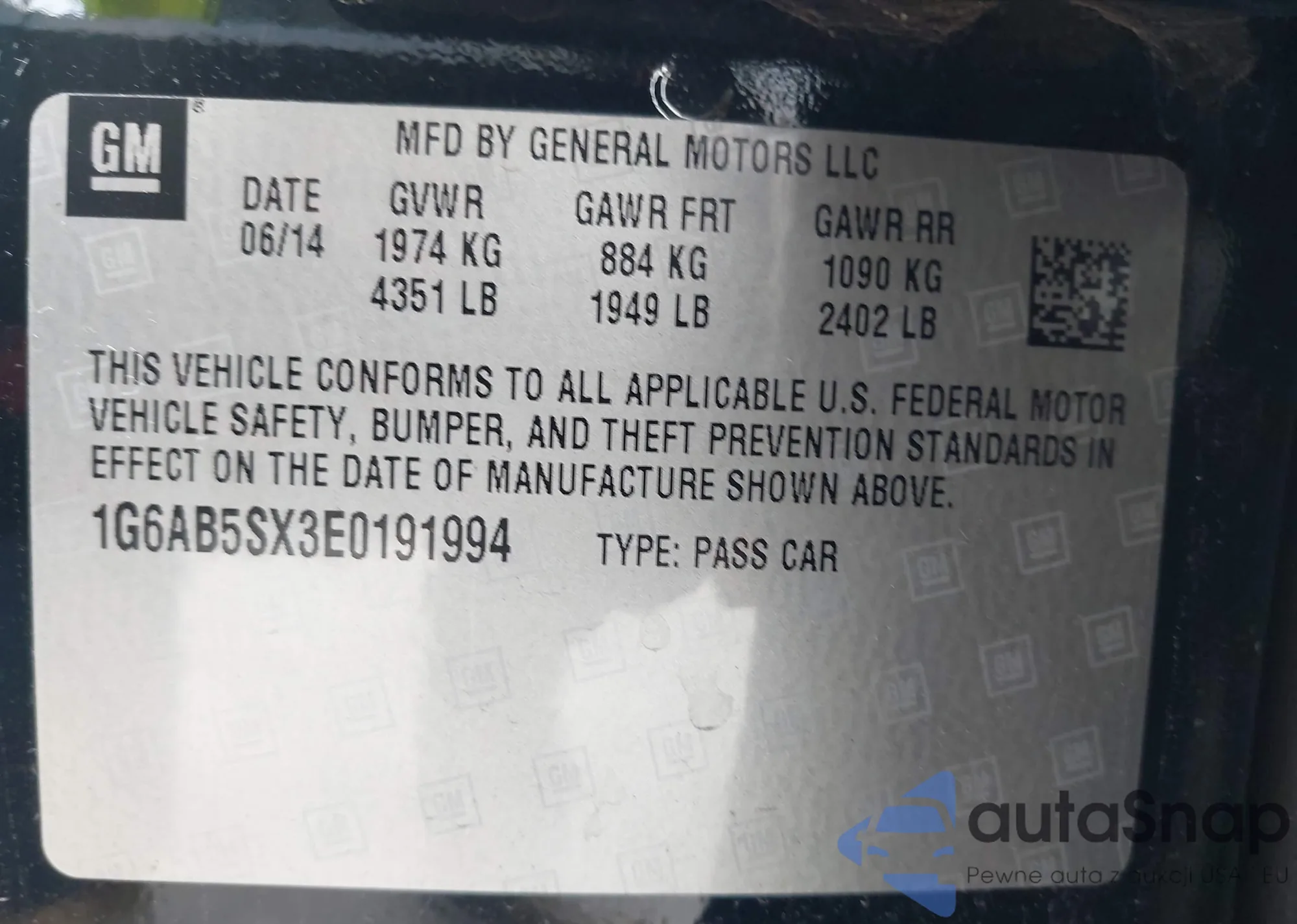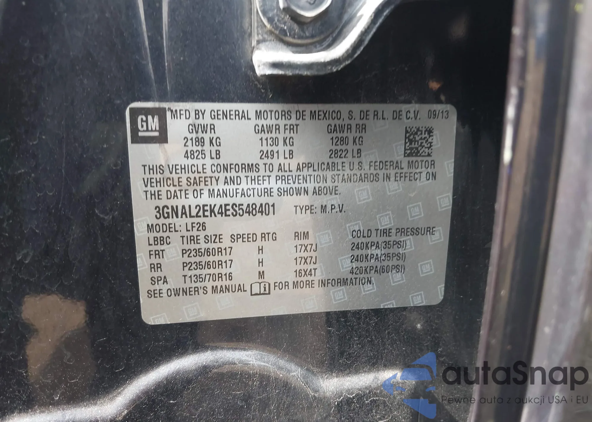 • VIN 3GNAL2EK4ES548401