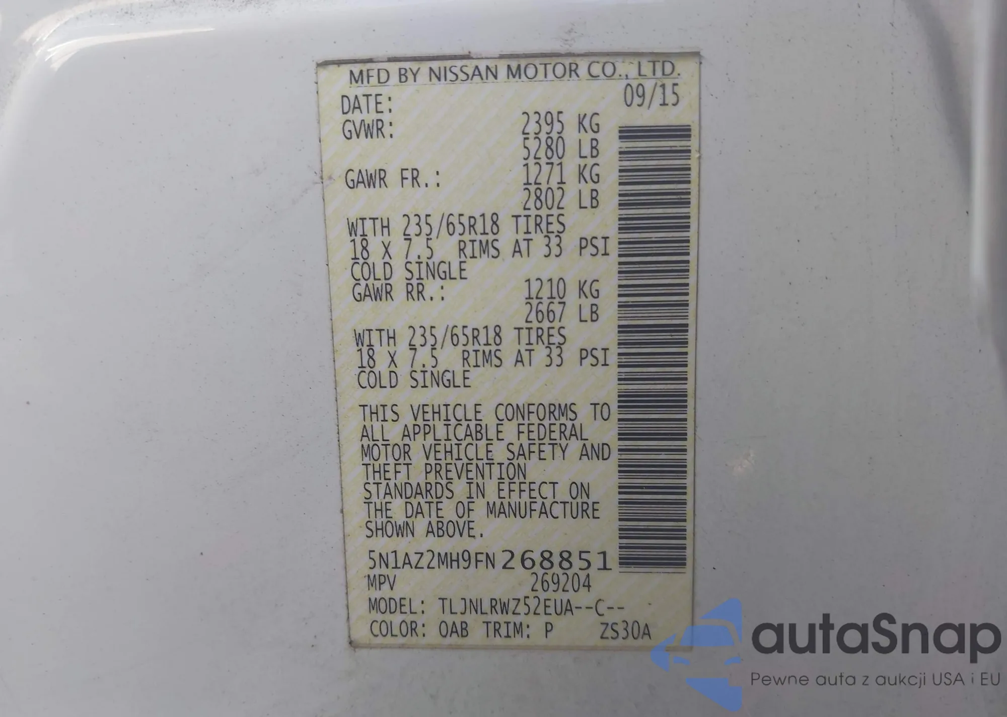 LOT: 43113707 VIN: 5N1BT3BA2NC706802