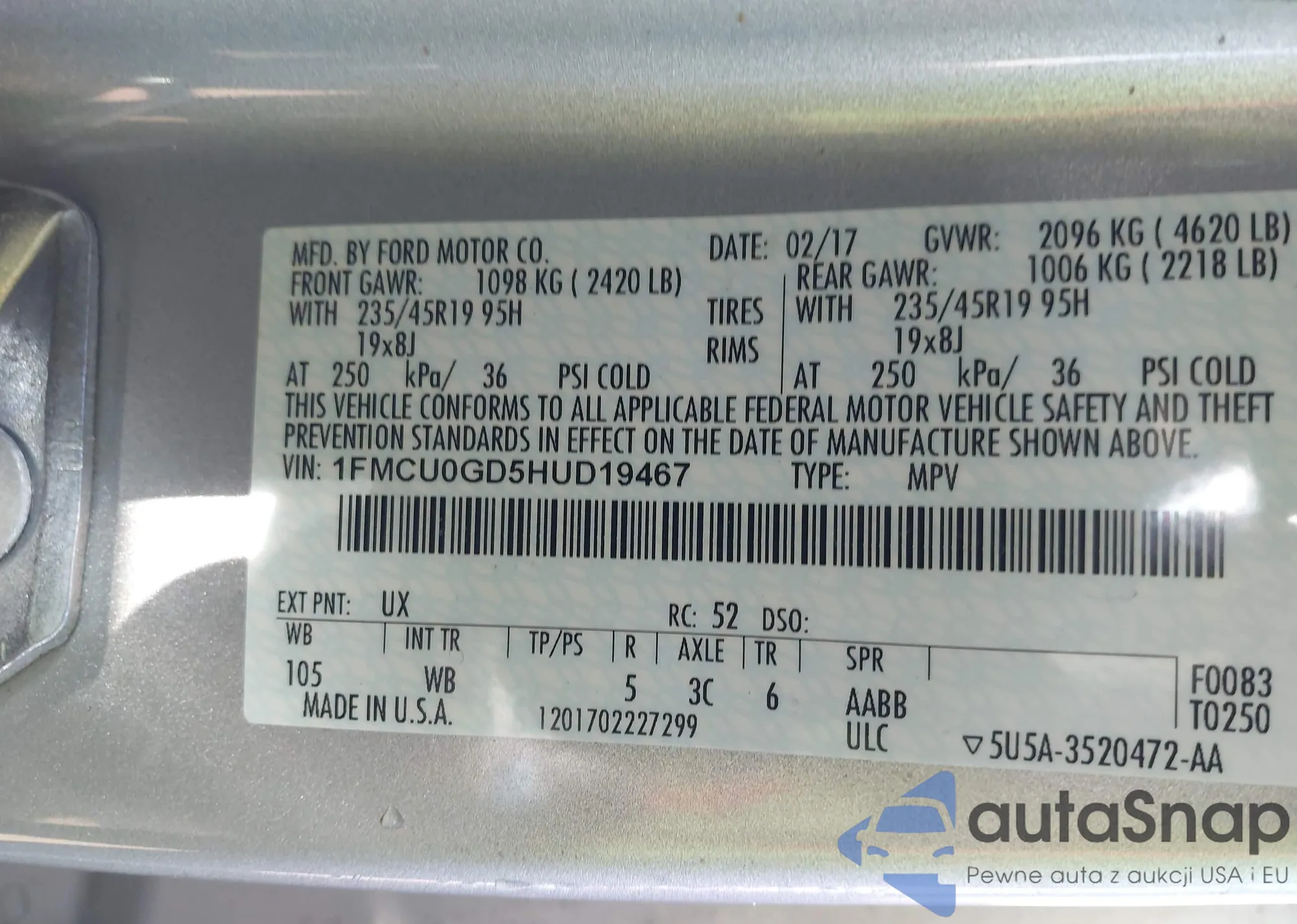 • VIN 3GNAXKEV3KS538243