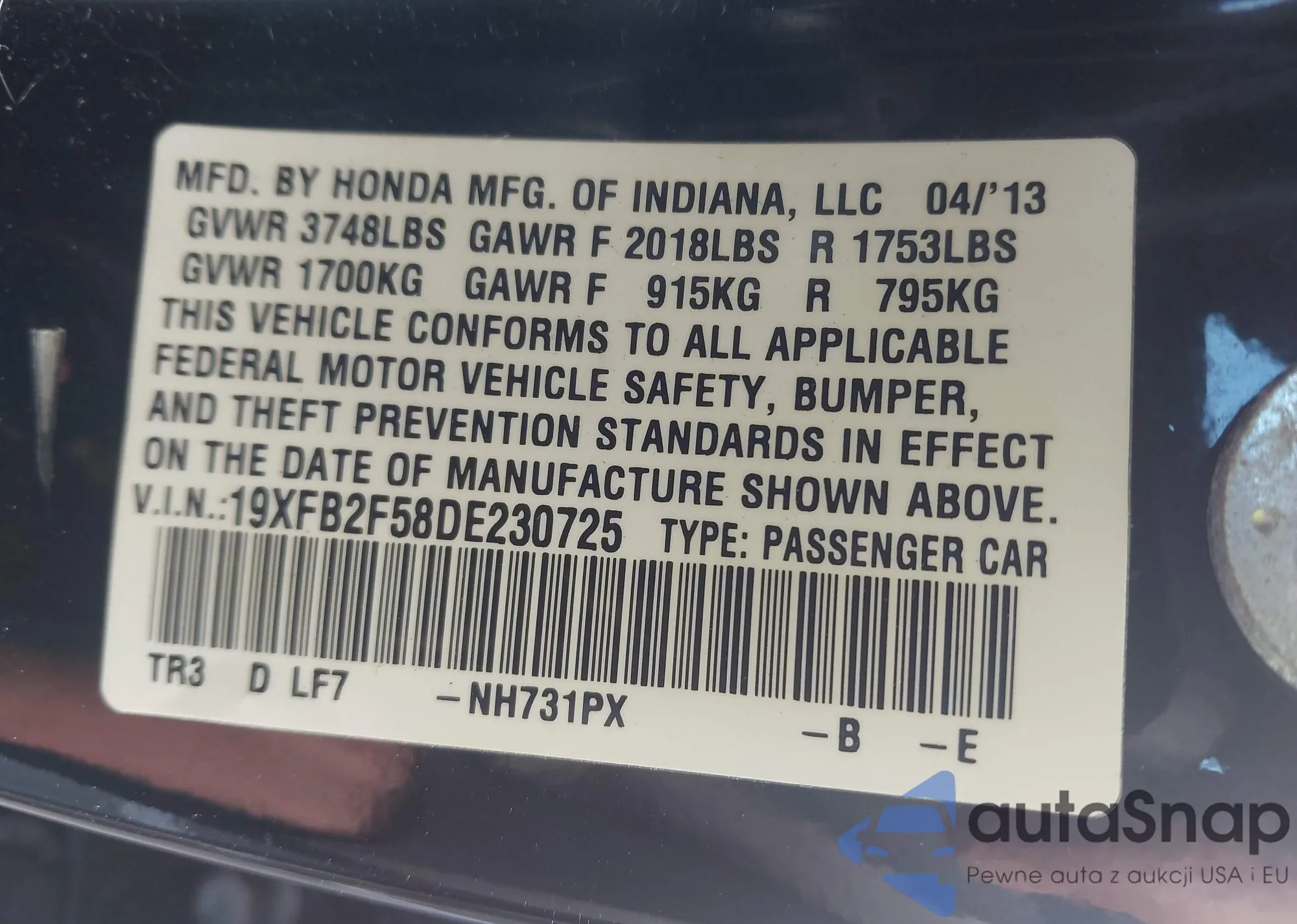 • VIN 19XFB2F58DE230725