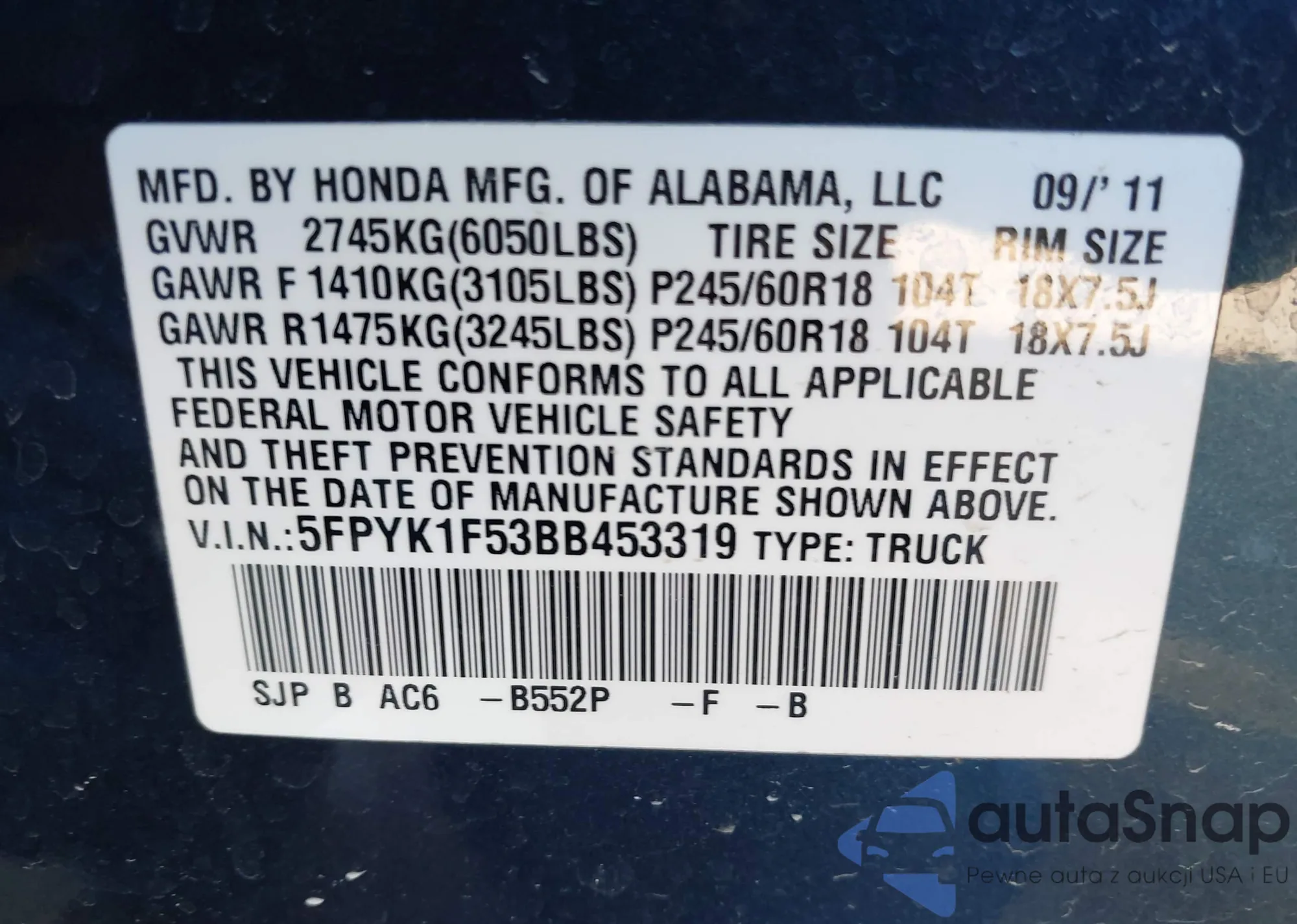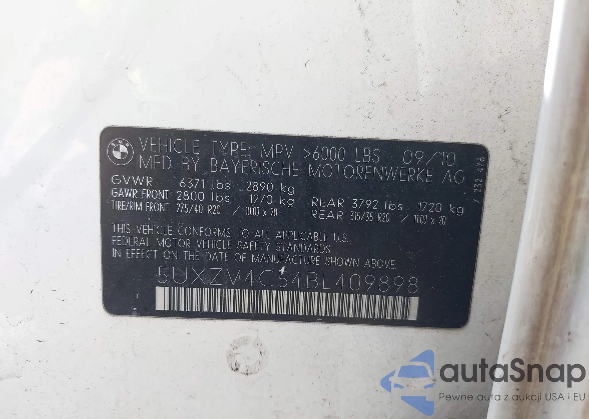 • VIN 5UXZV4C54BL409898