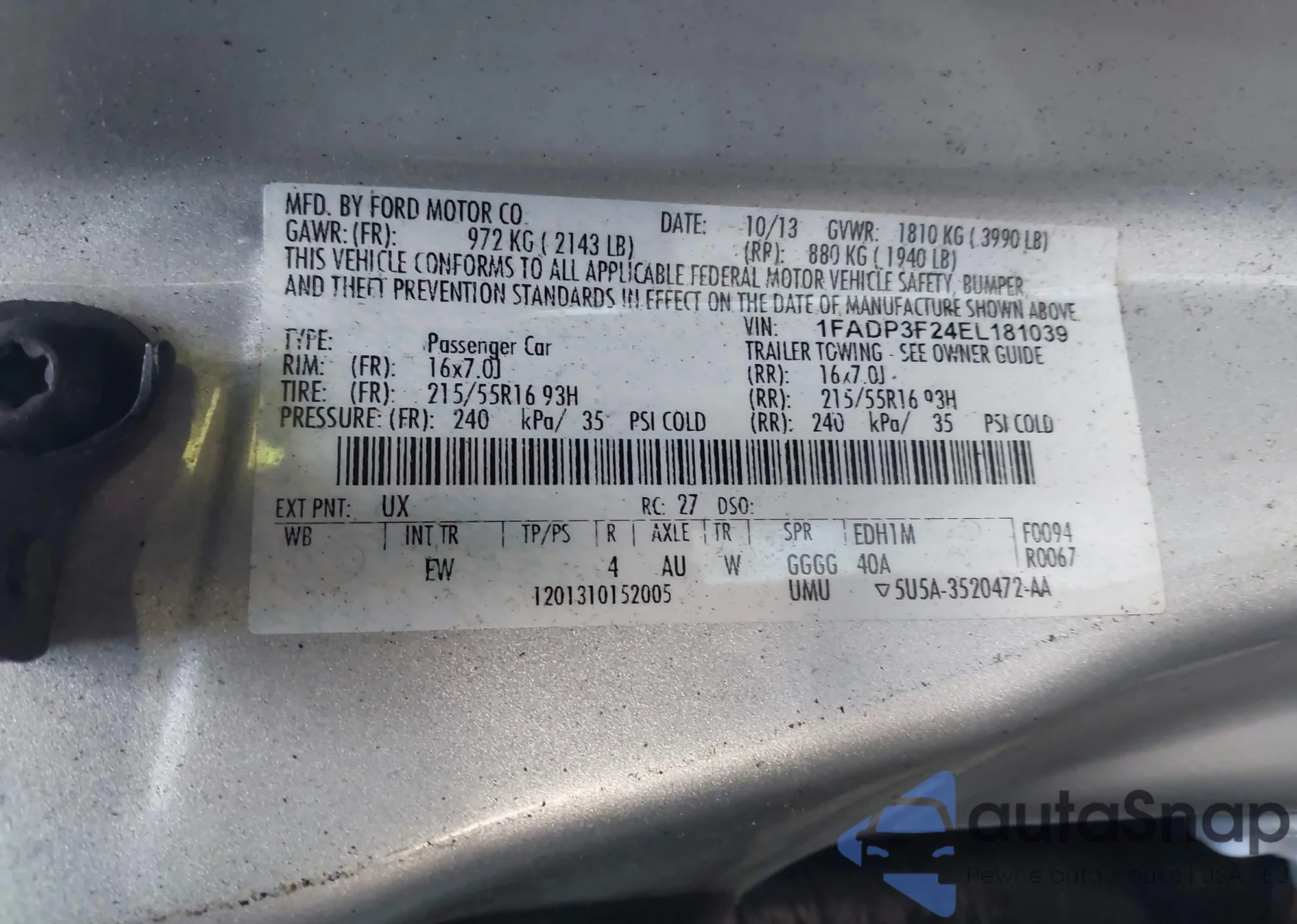LOT: 43550345 VIN: KNAFG528397255409