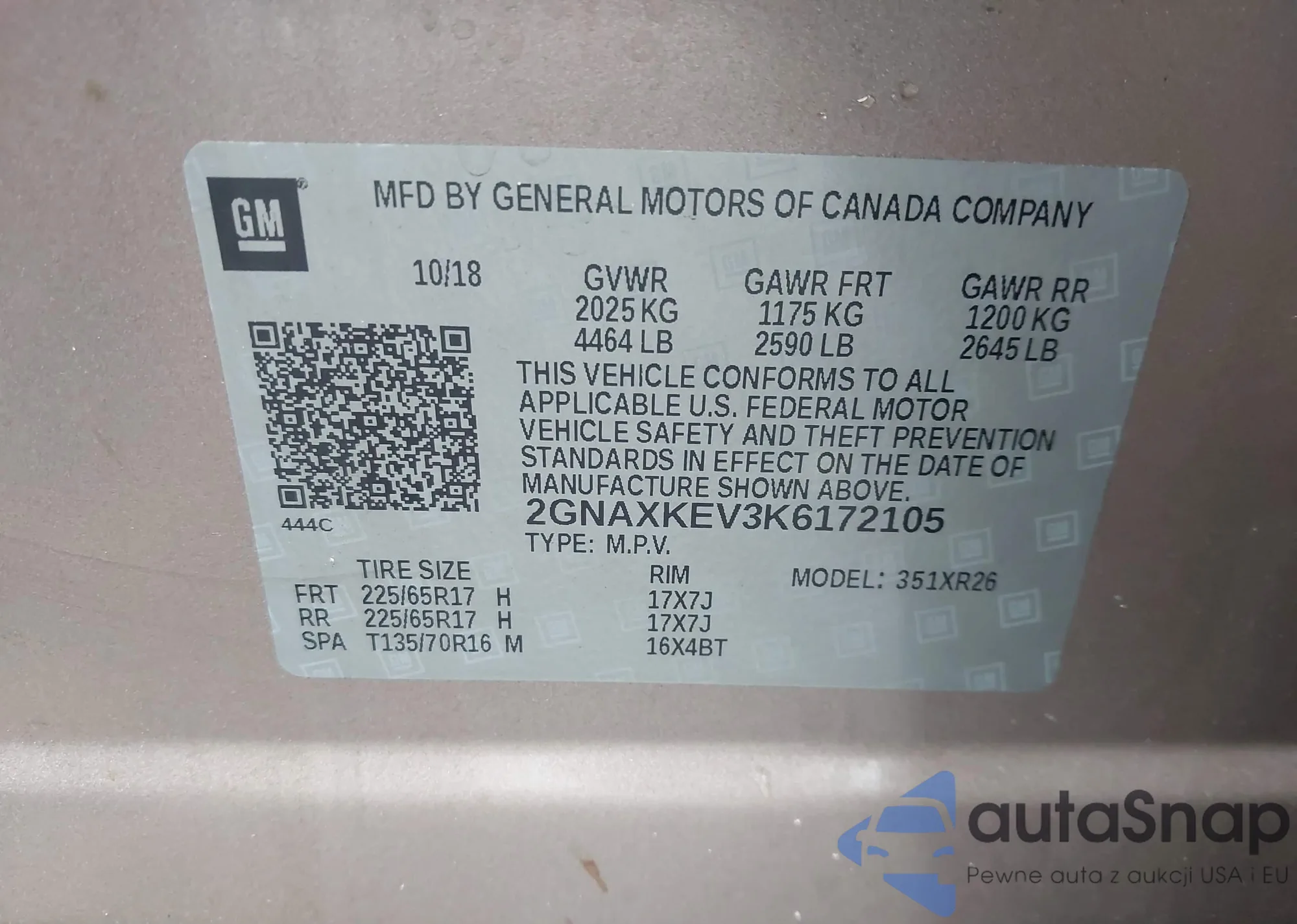 • VIN 2GNAXKEV3K6172105