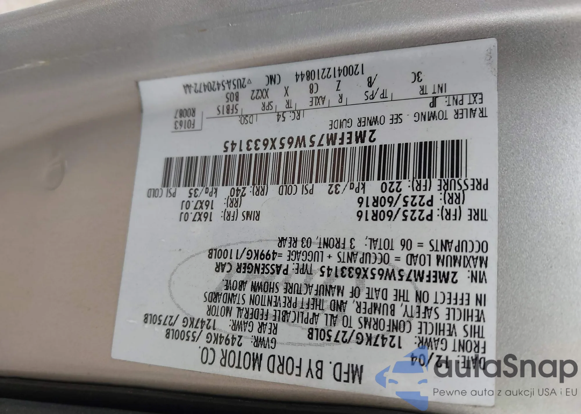 • VIN 2MEFM75W65X633145