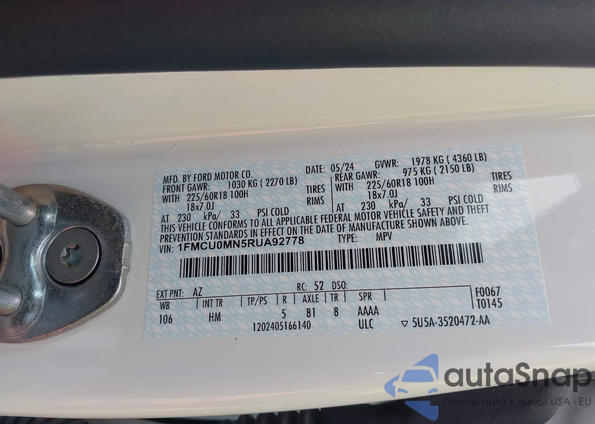 LOT: 43690364 VIN: 1FA6P8THXK5178113