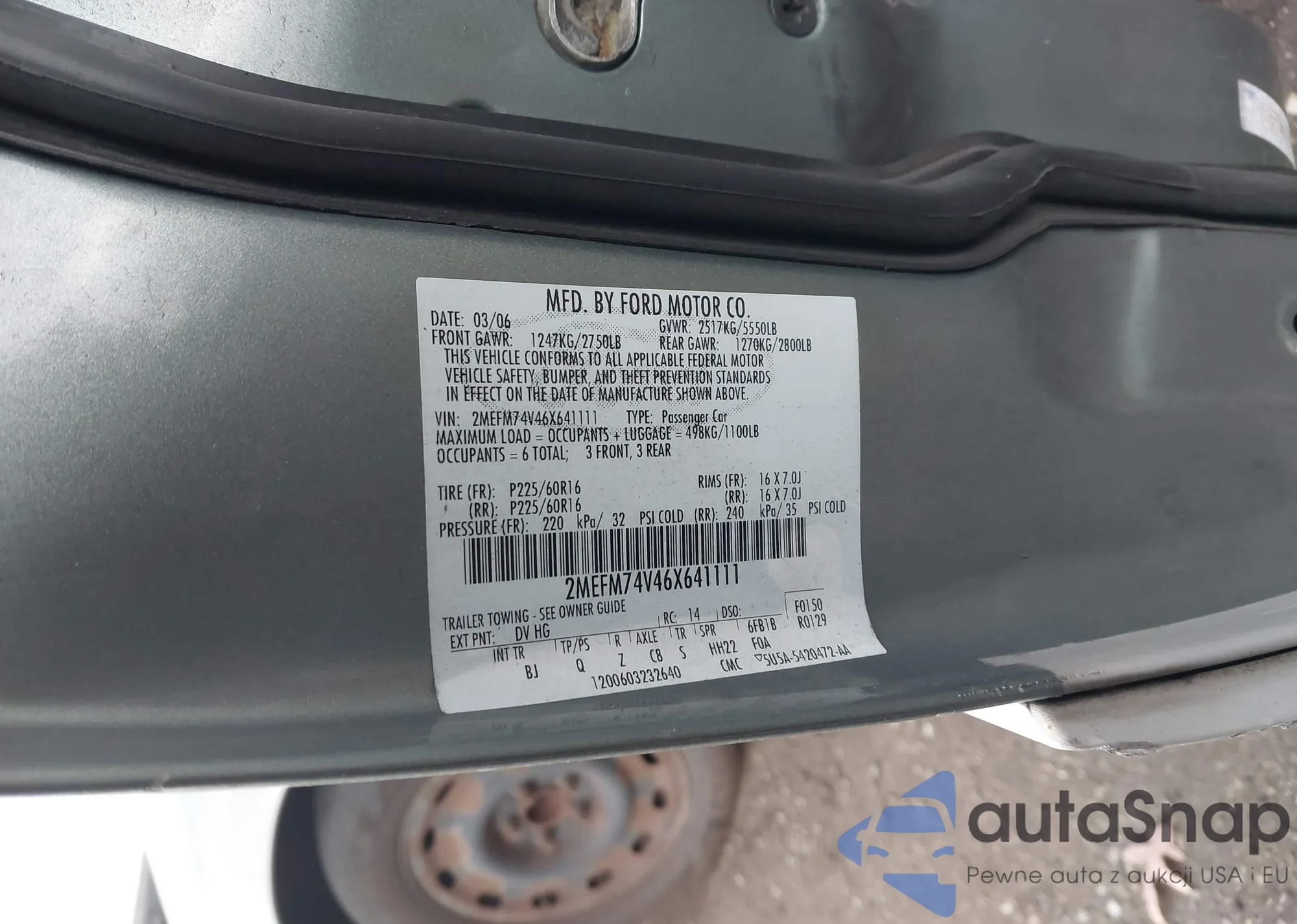 LOT: 43668346 VIN: 2MEFM74V46X641111