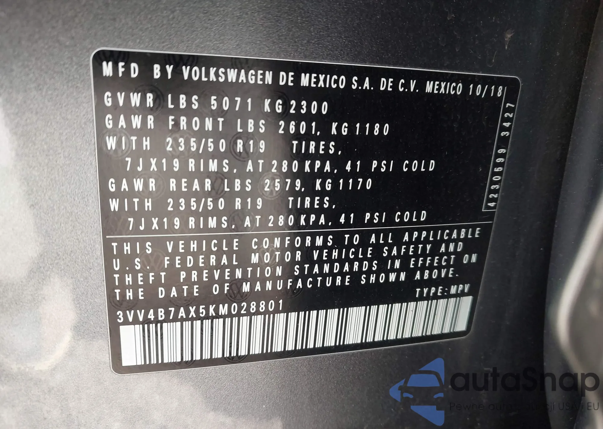 LOT: 43664868 VIN: WA1LFAFP7CA128413