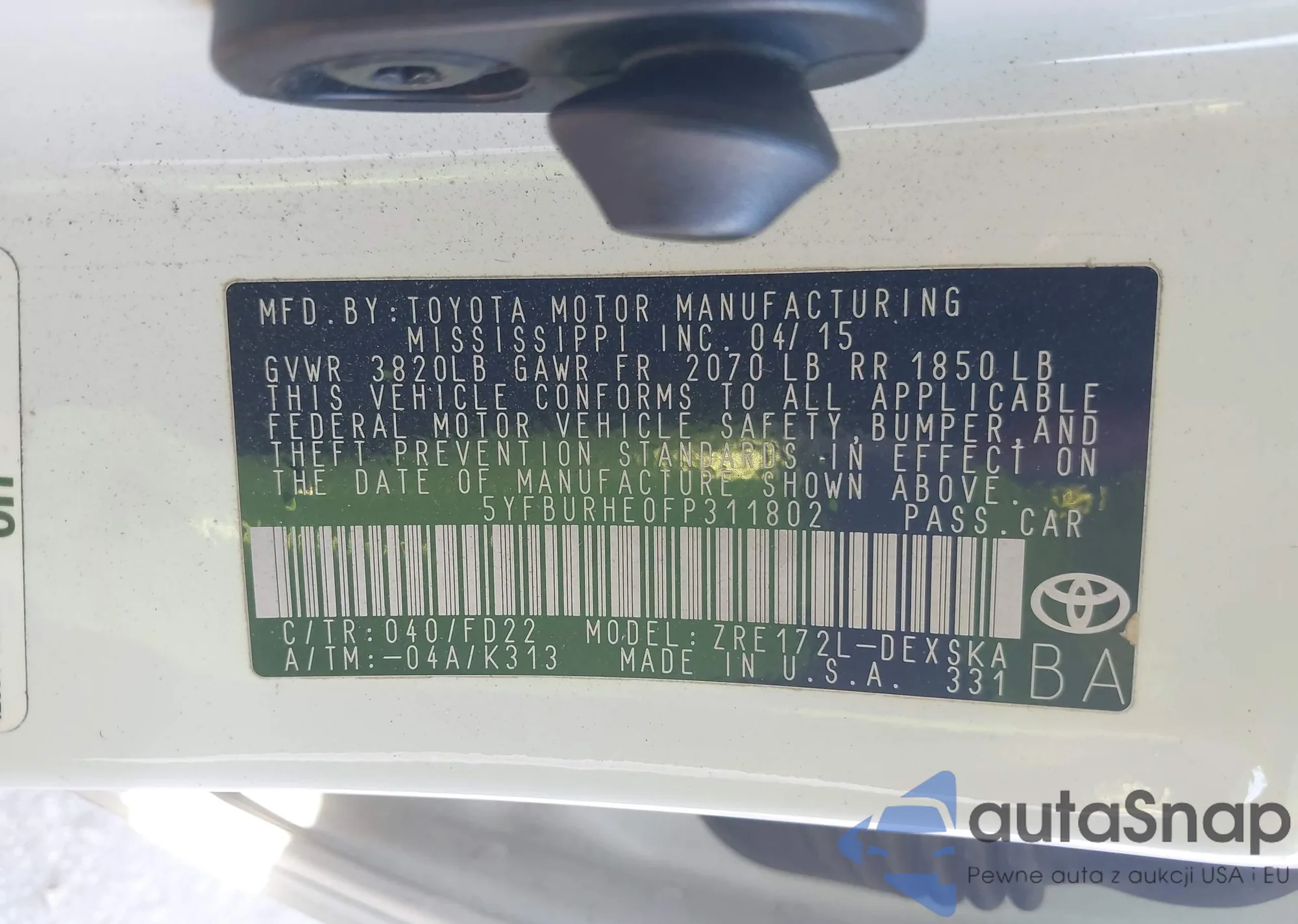 • VIN 5YFBURHE0FP311802