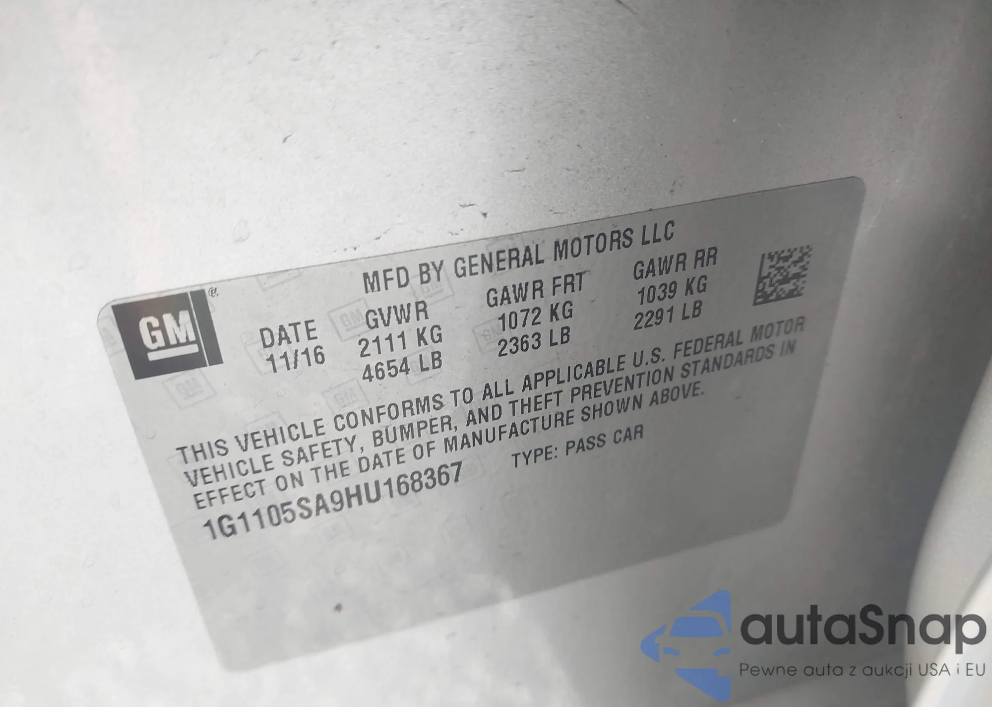 • VIN 1G1105SA9HU168367