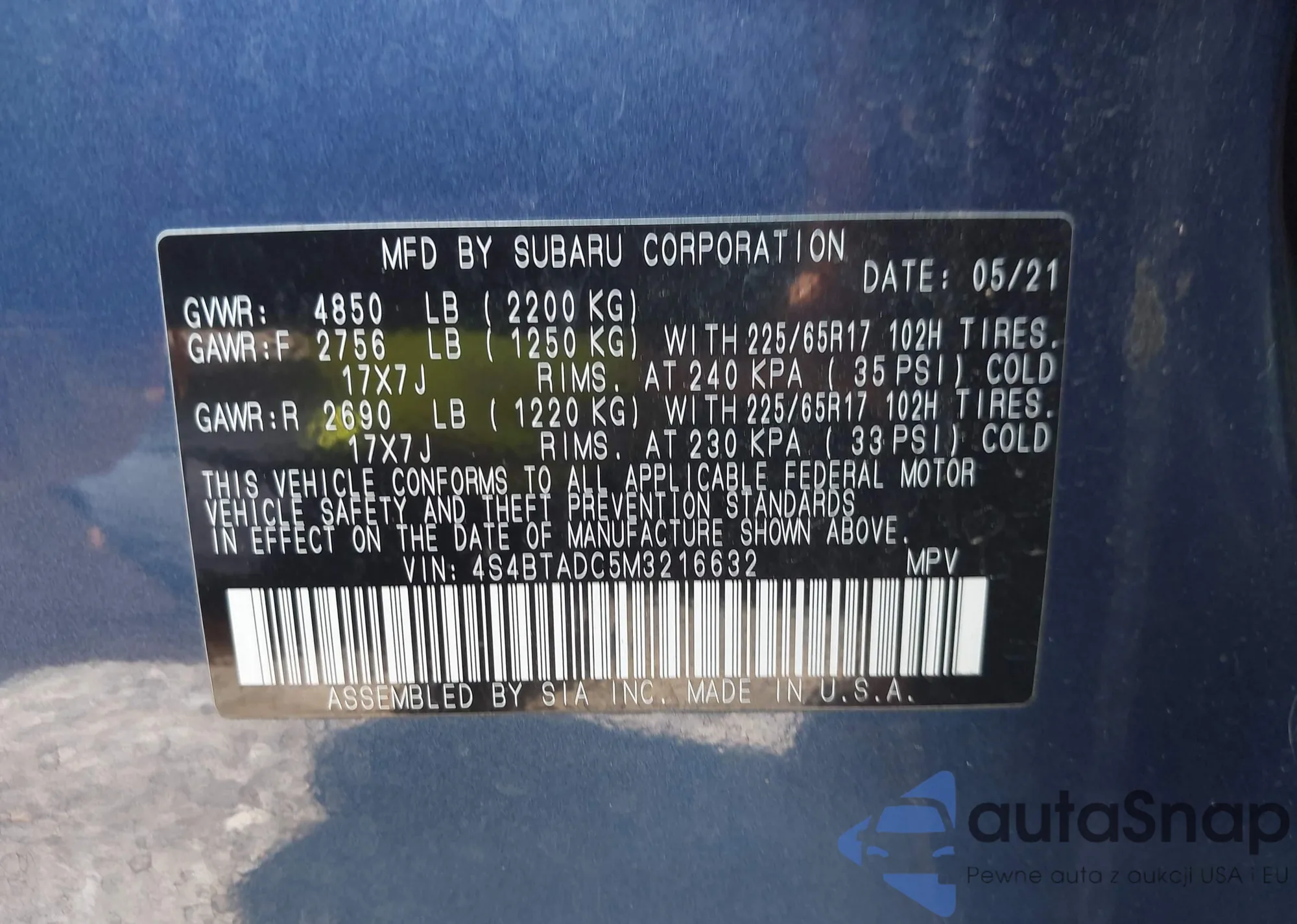 • VIN 1HGCP2F88AA008197