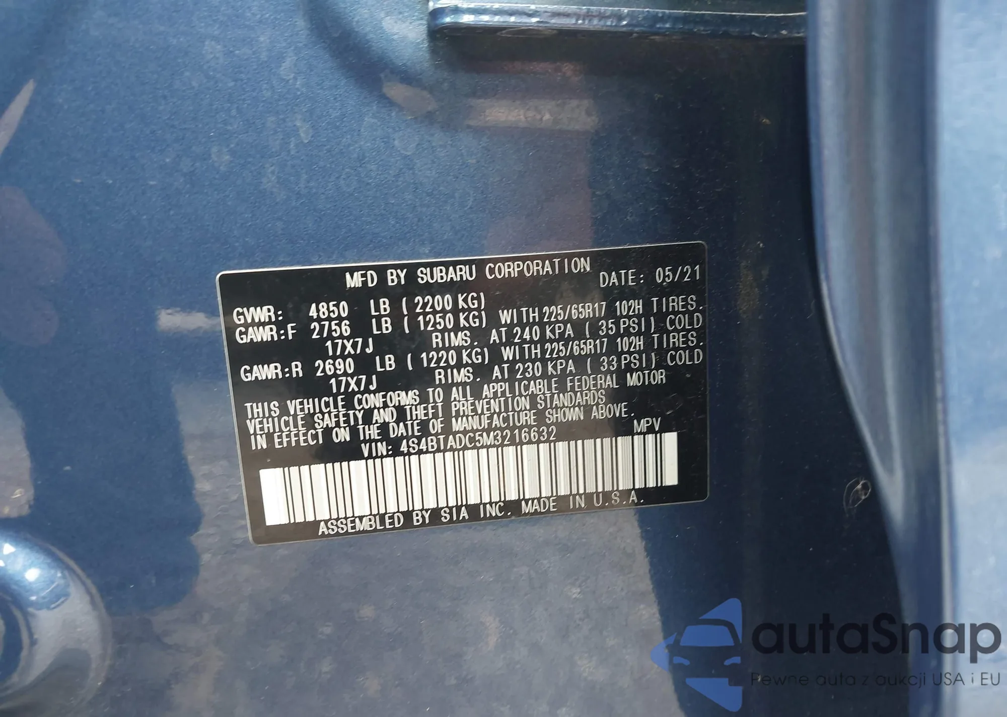 • VIN 1C4PJMCX5KD250356