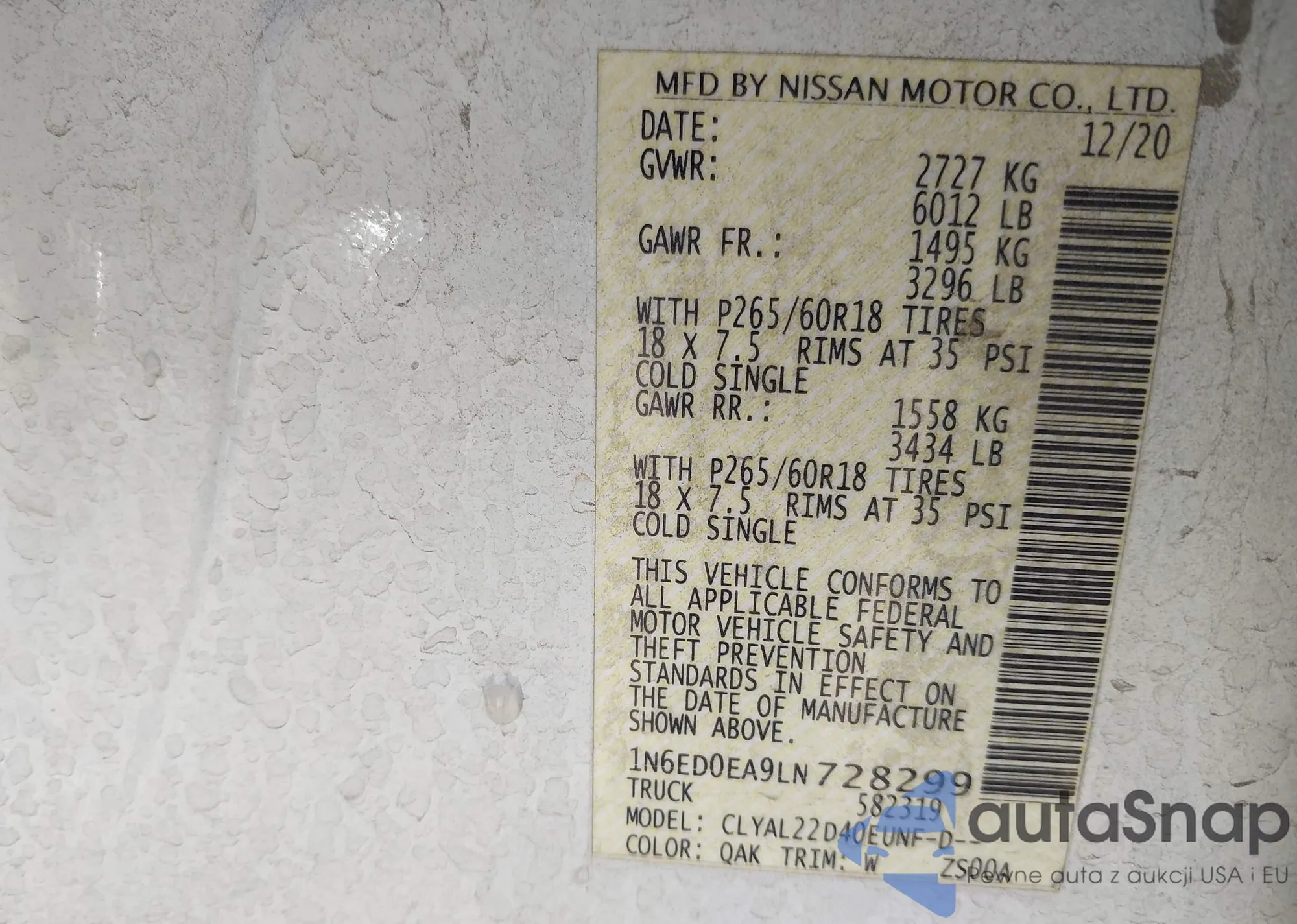 LOT: 43657712 VIN: 1N6ED0EA9LN728299