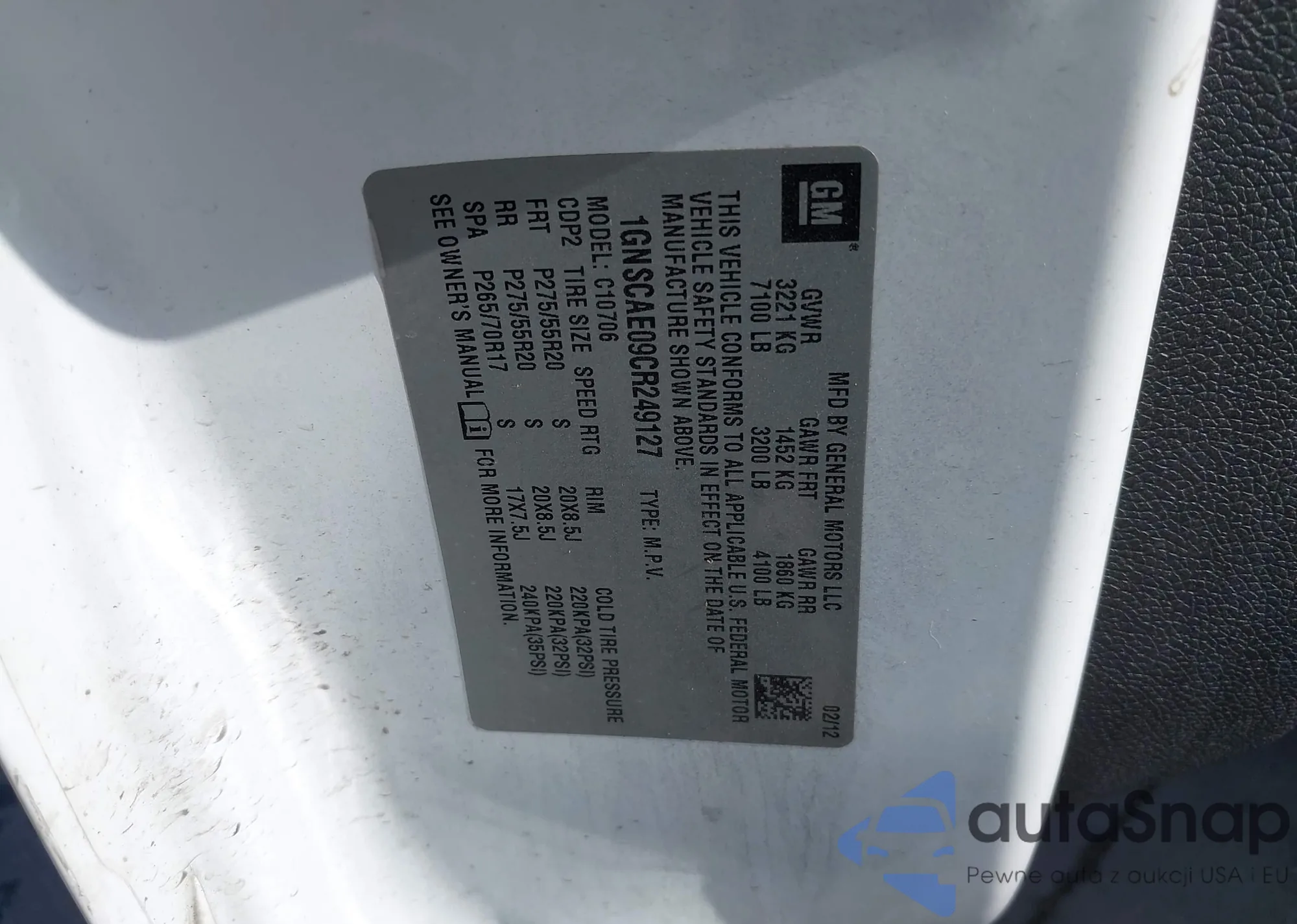 LOT: 43410518 VIN: 1GNSCNKD6RR130734