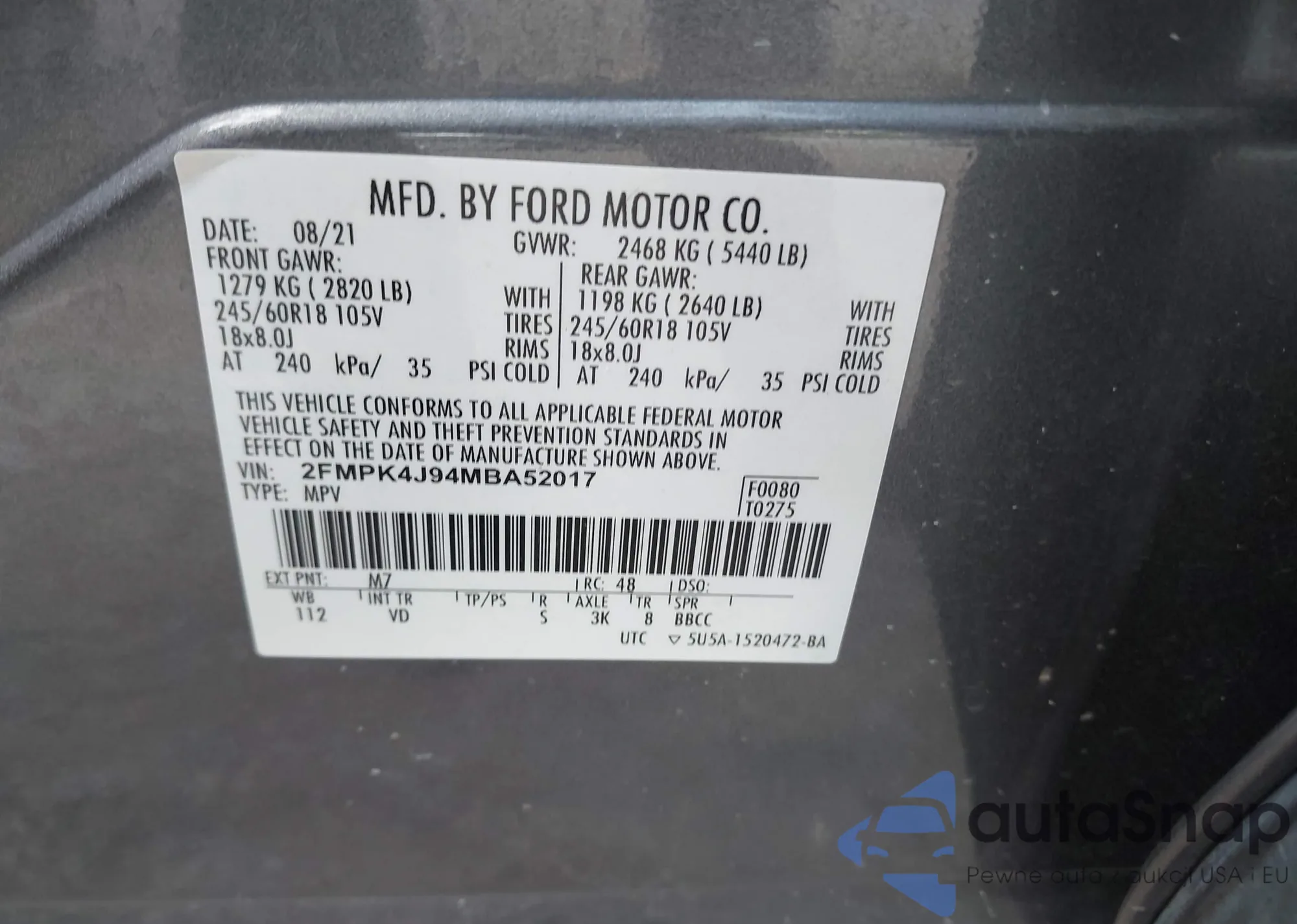 • VIN 2FMPK4J94MBA52017