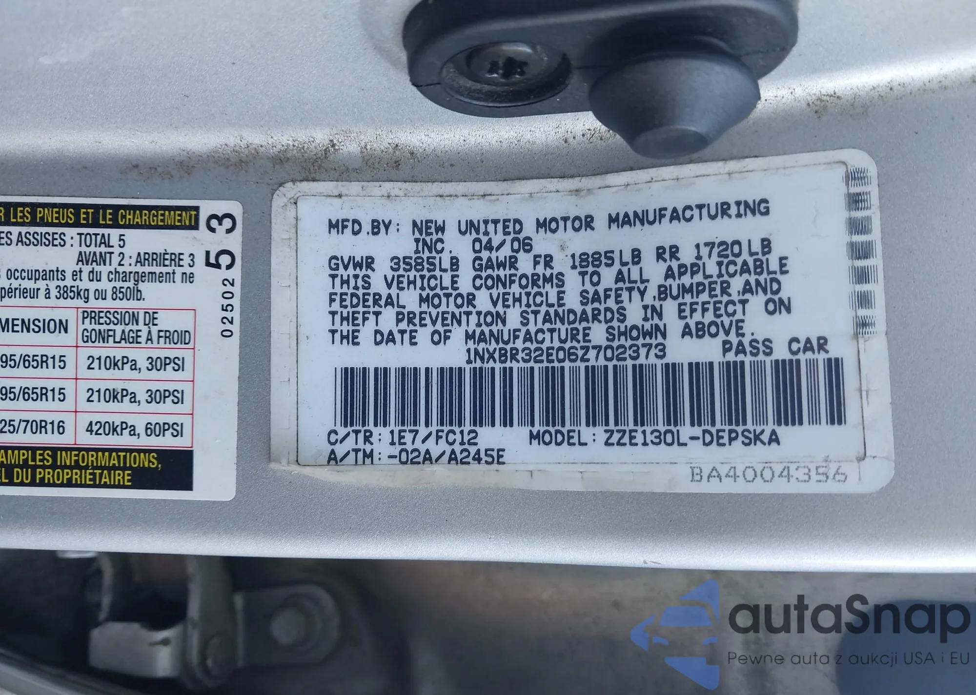 • VIN 3KPFT4DE0SE035761