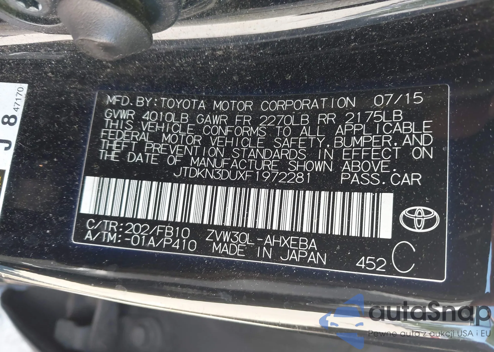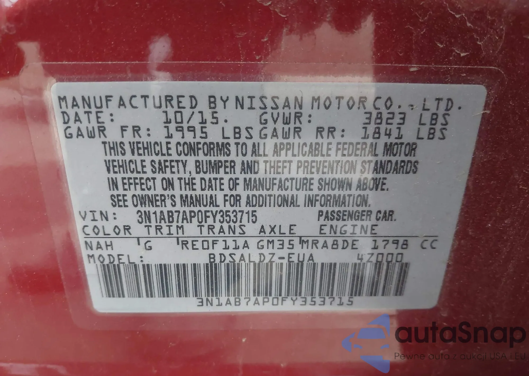 LOT: 43158063 VIN: WBAJA5C53JWA35944
