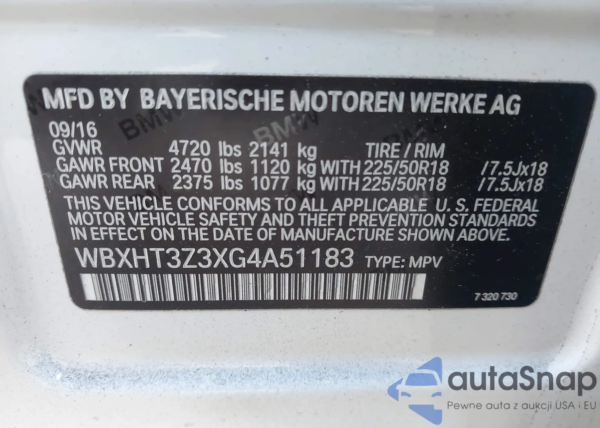 LOT: 43573974 VIN: WBXHT3Z3XG4A51183