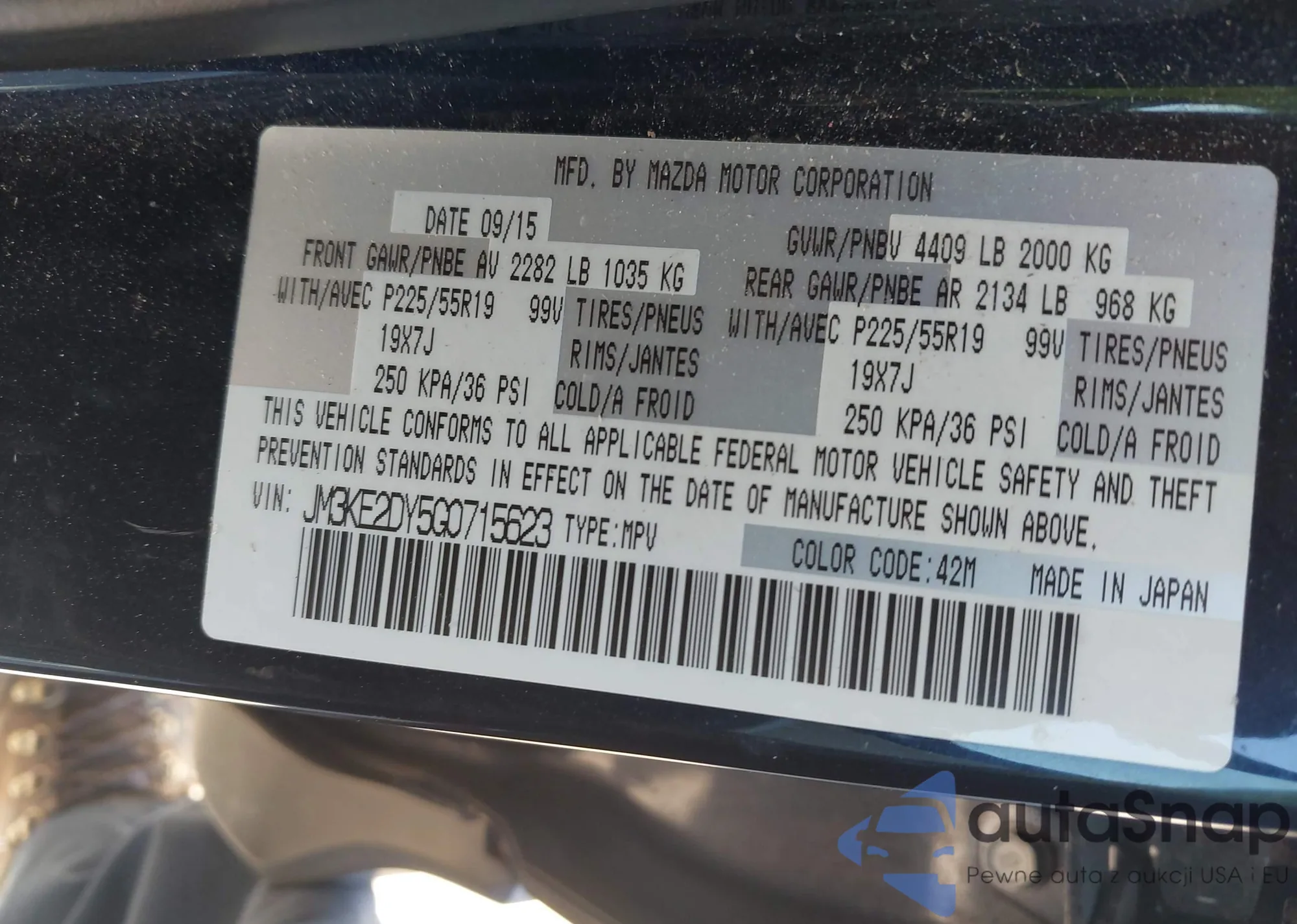 LOT: 43582561 VIN: JM3KE2DY5G0715623