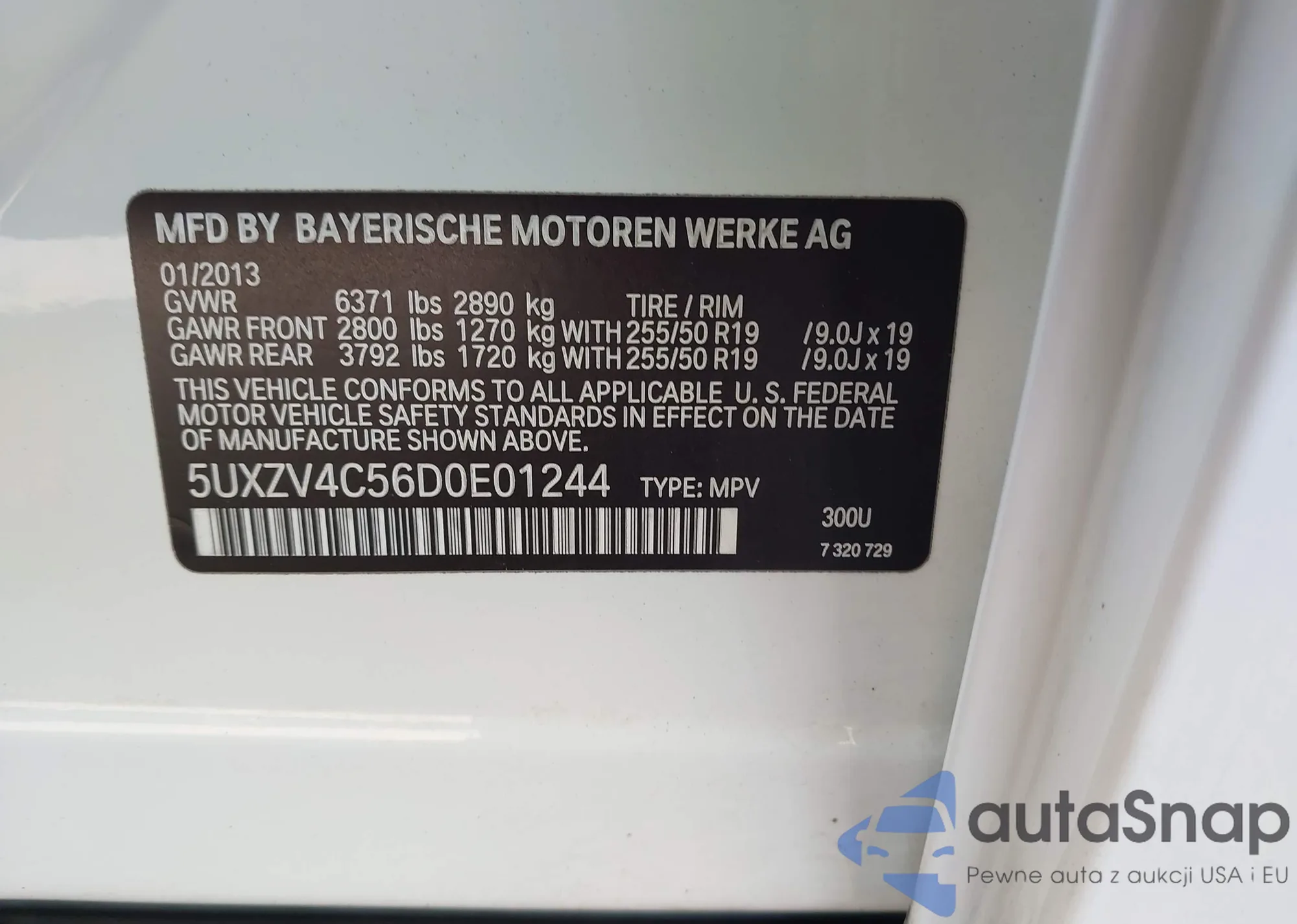 LOT: 43691816 VIN: 5UXZV4C56D0E01244