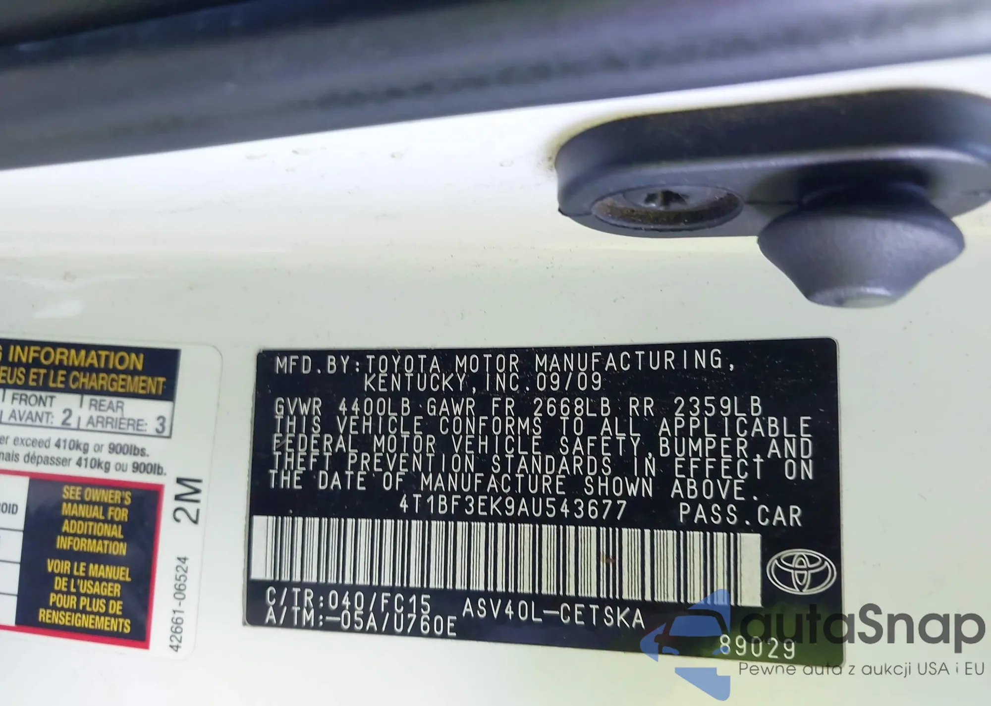 LOT: 43533402 VIN: 4T1BF3EK9AU543677