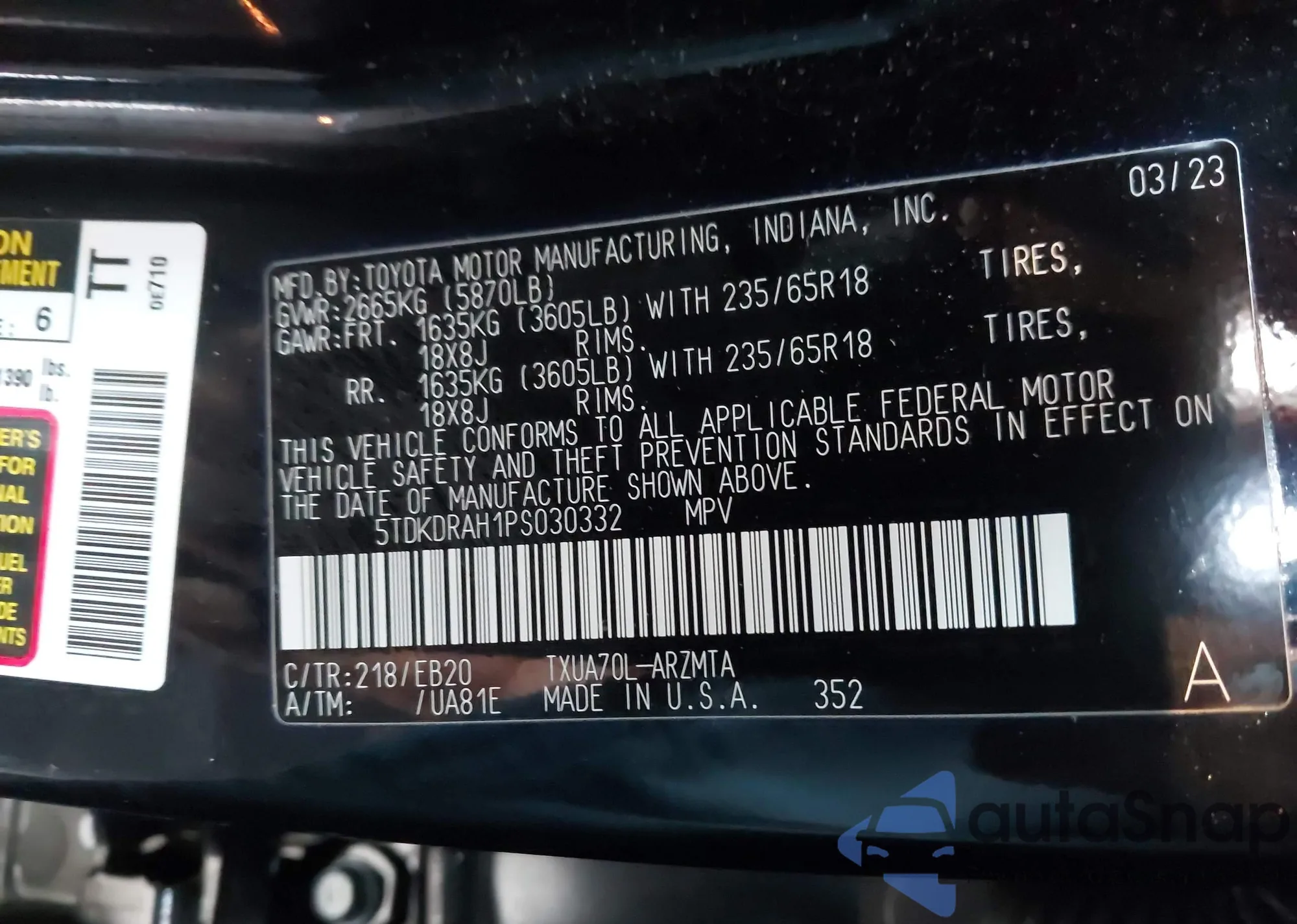 • VIN 5TDKDRAH1PS030332