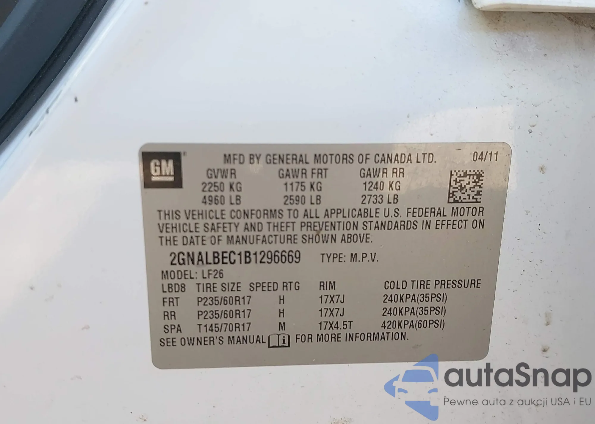 • VIN KL1TD5DEXBB211032