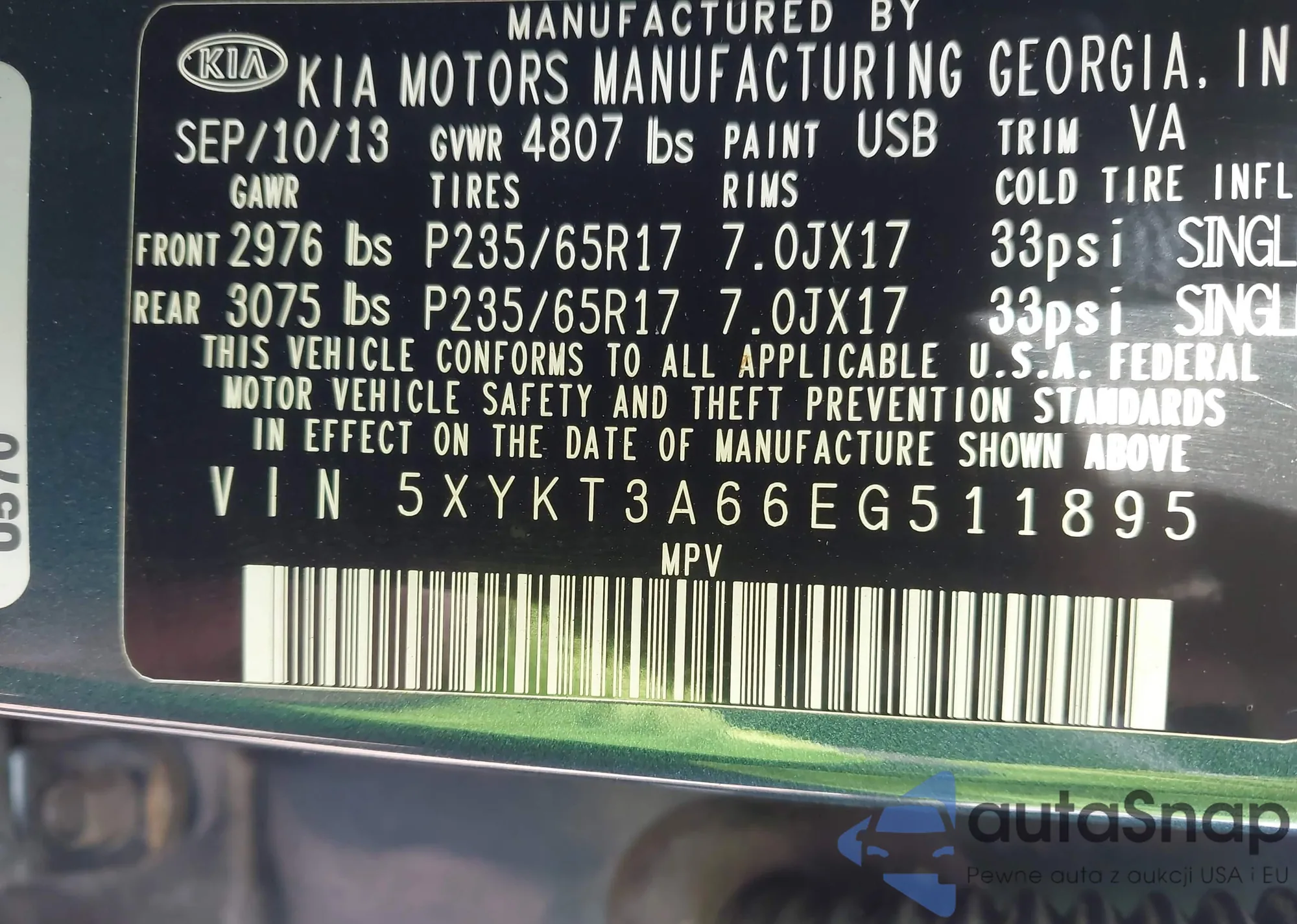 • VIN 5XYKT3A66EG511895