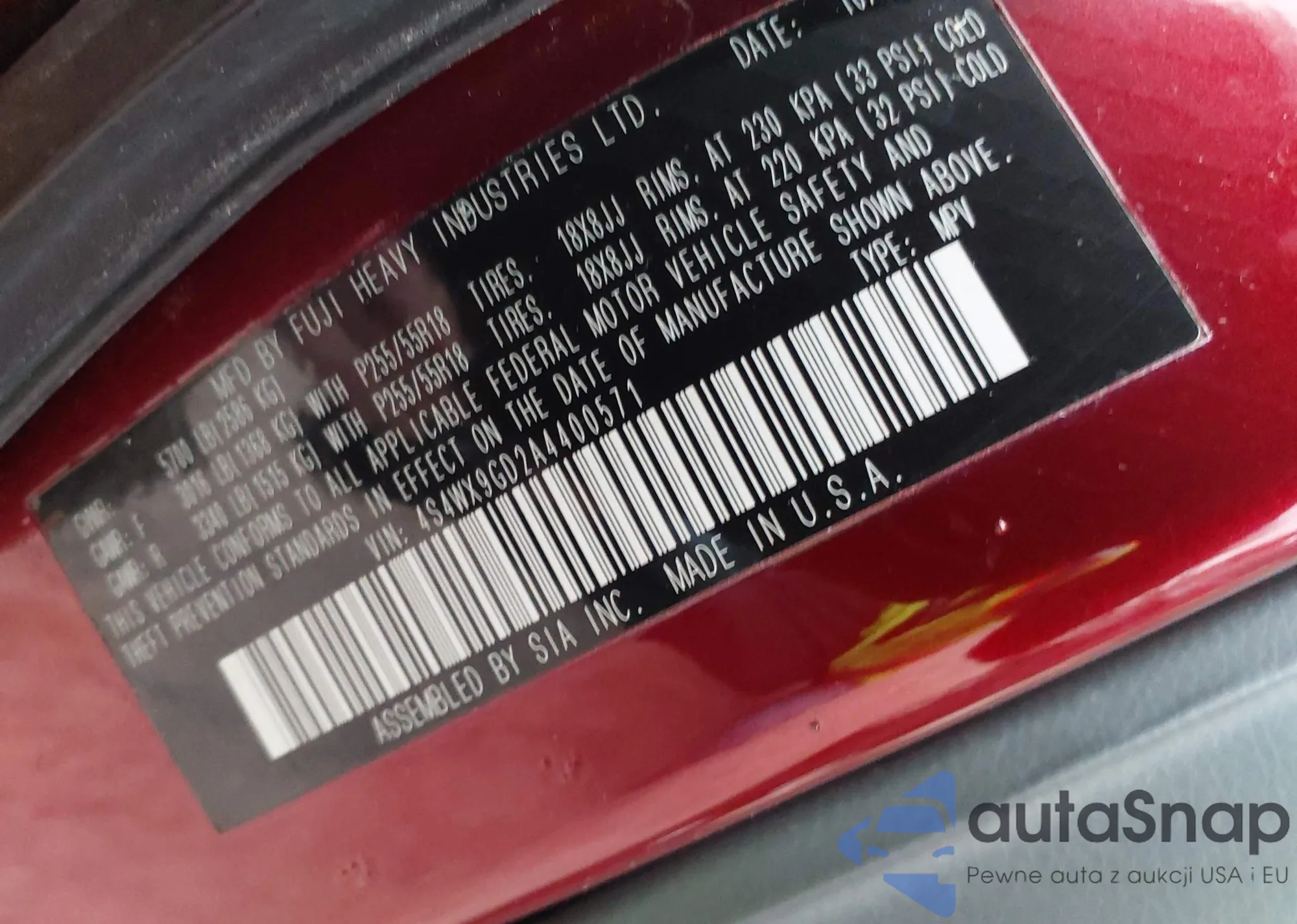• VIN 4S4WX9KD5A4401981