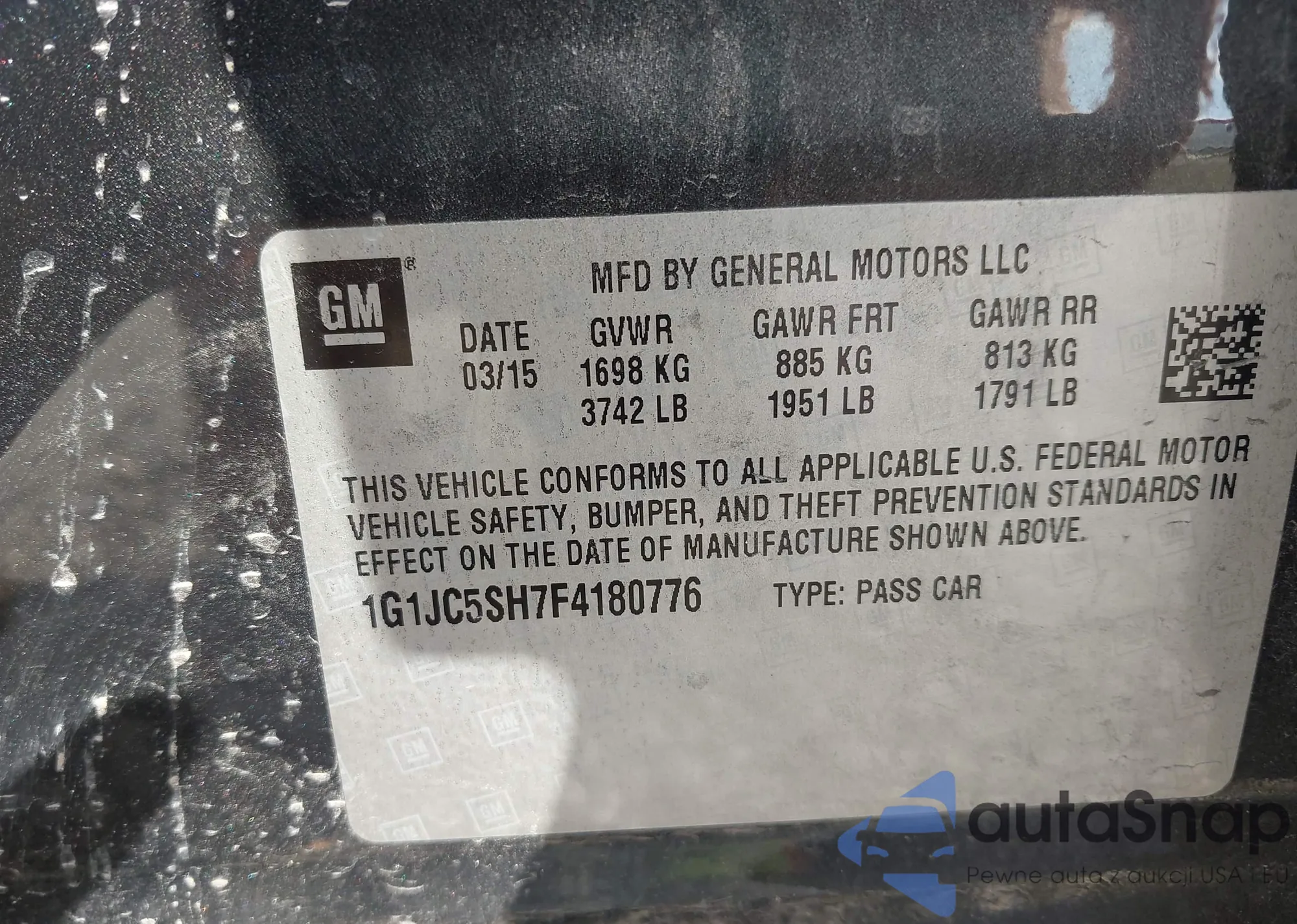 LOT: 43746809 VIN: 1G1JC5SH7F4180776