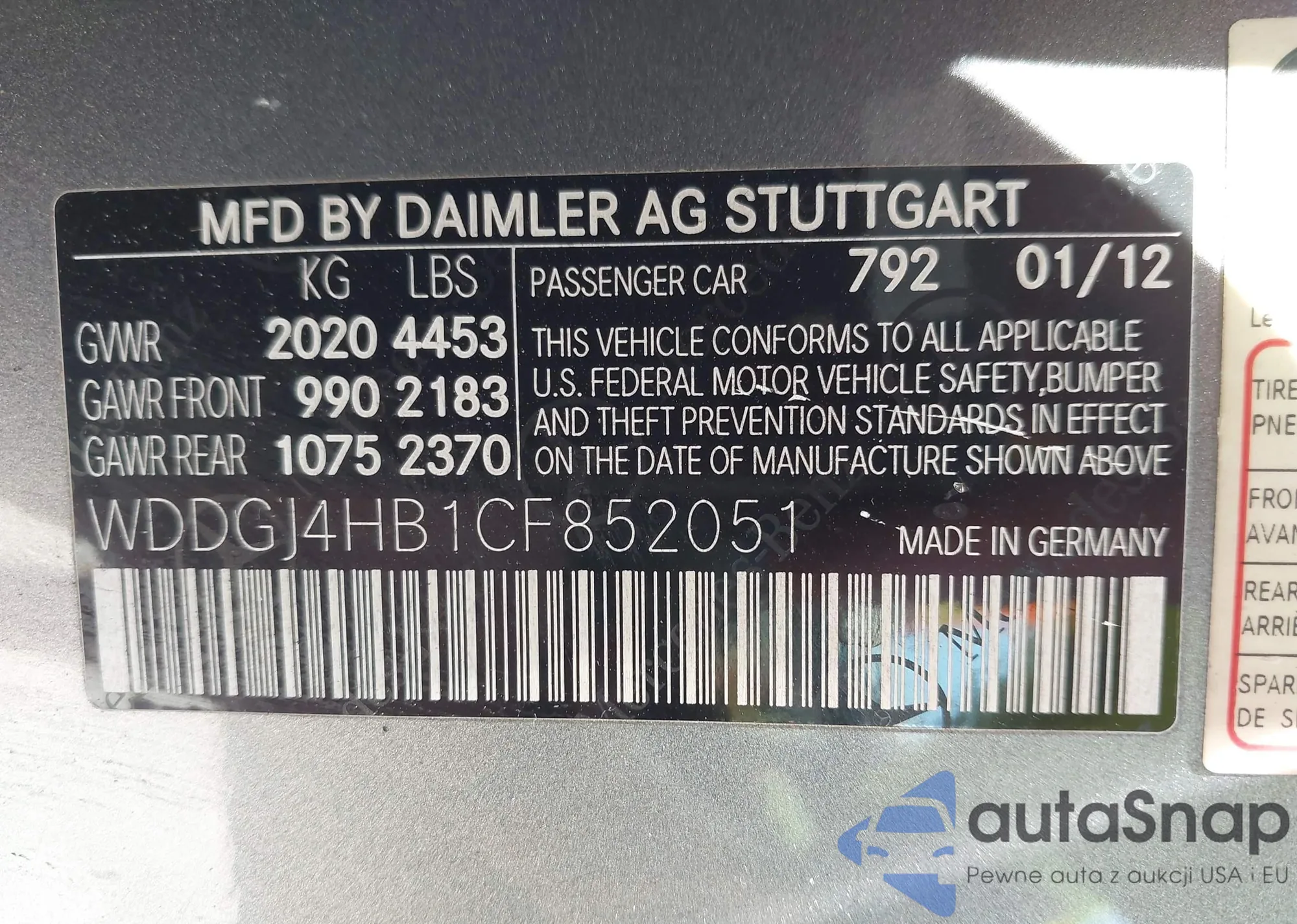 LOT: 43066427 VIN: WDDGJ4HB1CF852051
